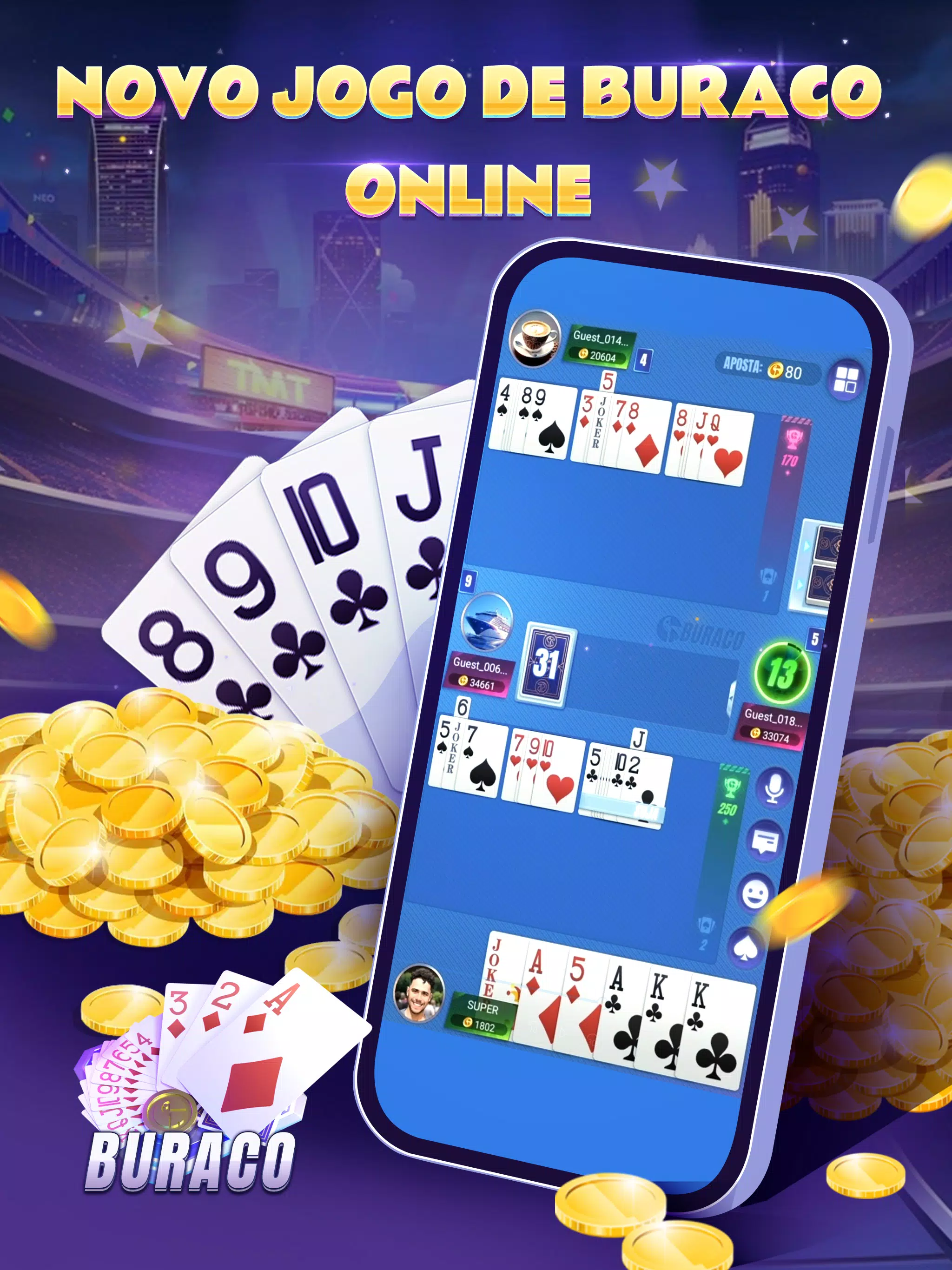 -Buraco: Melhor Buraco on-line, convide seus amigos para formar a equipe, alcançar o top 1 do aplicativo.