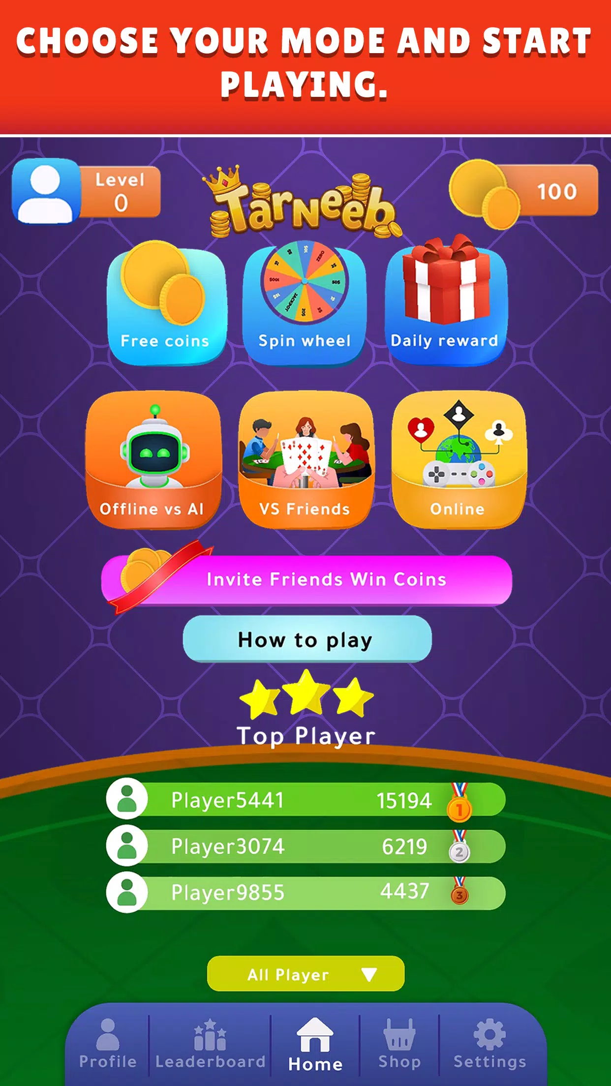 经典卡牌游戏 Tarneeb 将考验您的技能,挑战您的战略思维。Tarneeb 在中东各国广受欢迎,主要分布在约旦、巴勒斯坦、黎巴嫩、叙利亚、埃及和沙特阿拉伯。Tarneeb 在英语中意为“王牌”。