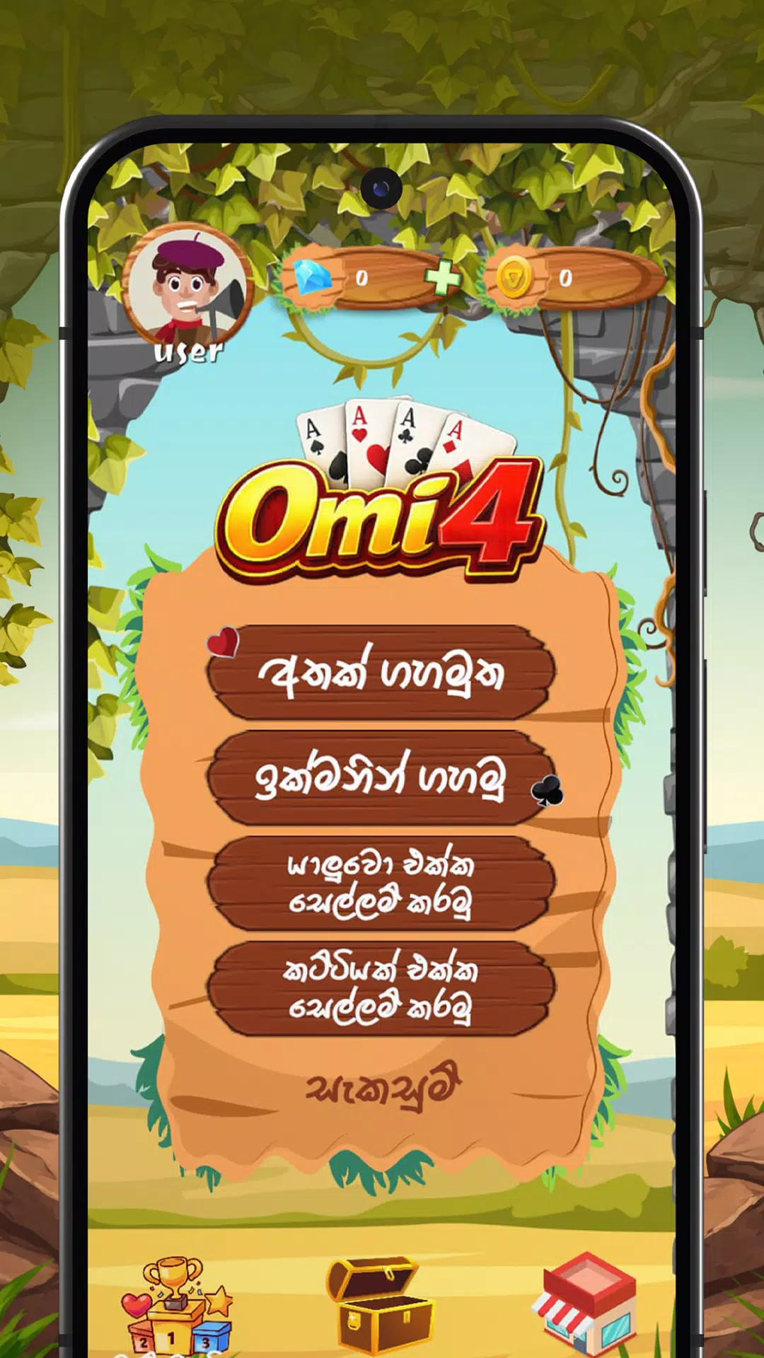 现在,您可以在移动设备上体验斯里兰卡备受欢迎的传统纸牌游戏 Omi4 的刺激!无论您是经验丰富的玩家还是新手,Omi App 都能以流畅的游戏体验、精美的画面和多人游戏模式,为您带来完整的传统游戏体验。
