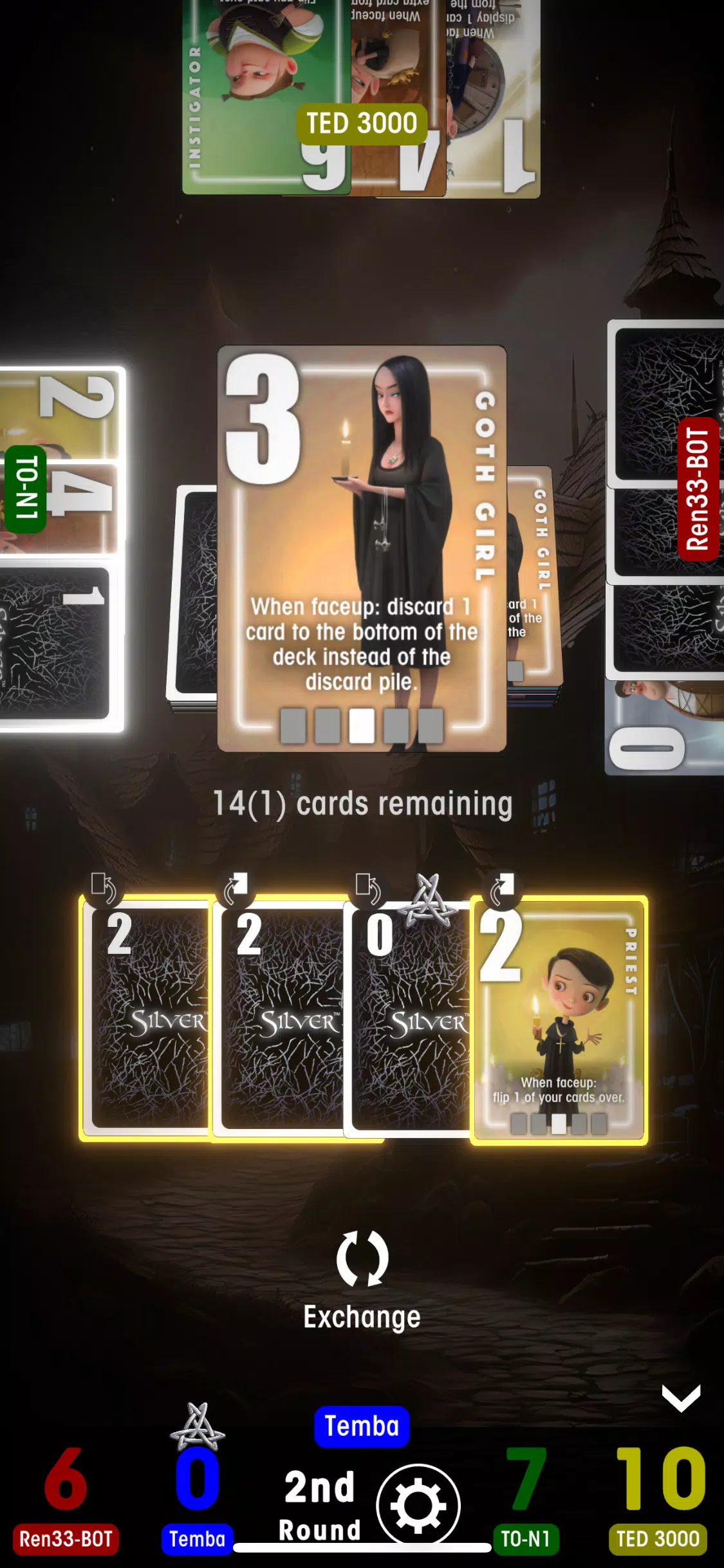“银牙”:加入像“奇数莫德”和“偶数史蒂文”这样的强力角色,他们分别可以取消奇数和偶数卡牌的效果!小心“计数员”,他会立即对所有面朝上的卡牌进行计分;没有人能逃脱死亡或缴税的命运。