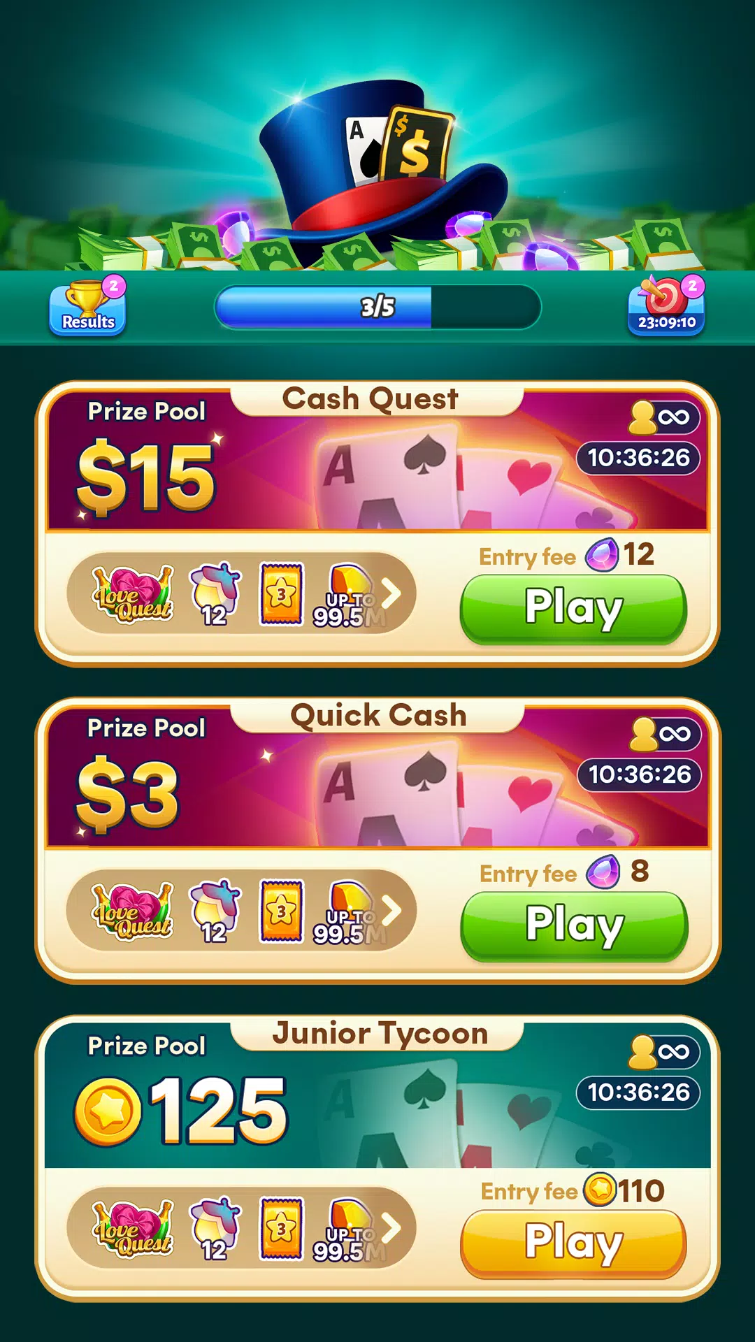 无论您是休闲纸牌玩家还是热爱竞技,您都会爱上我们不断演变的挑战、动画城镇和丰富的视觉设计。觉得自己最棒?快来参加我们的多人锦标赛,挑战排行榜,炫耀您的技能吧!
