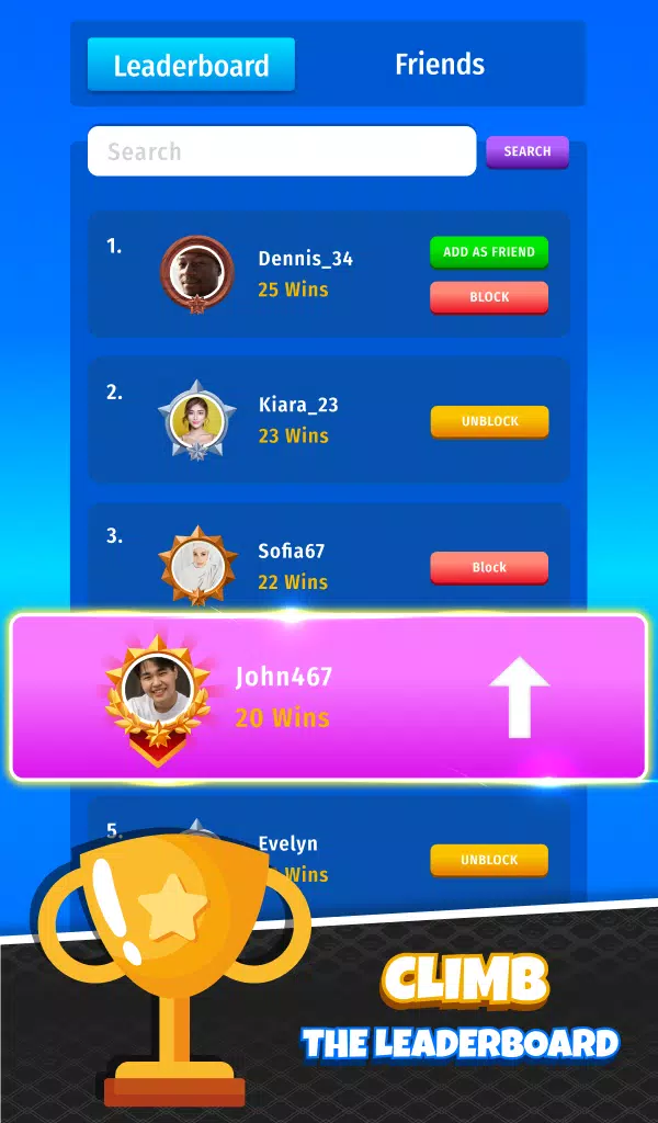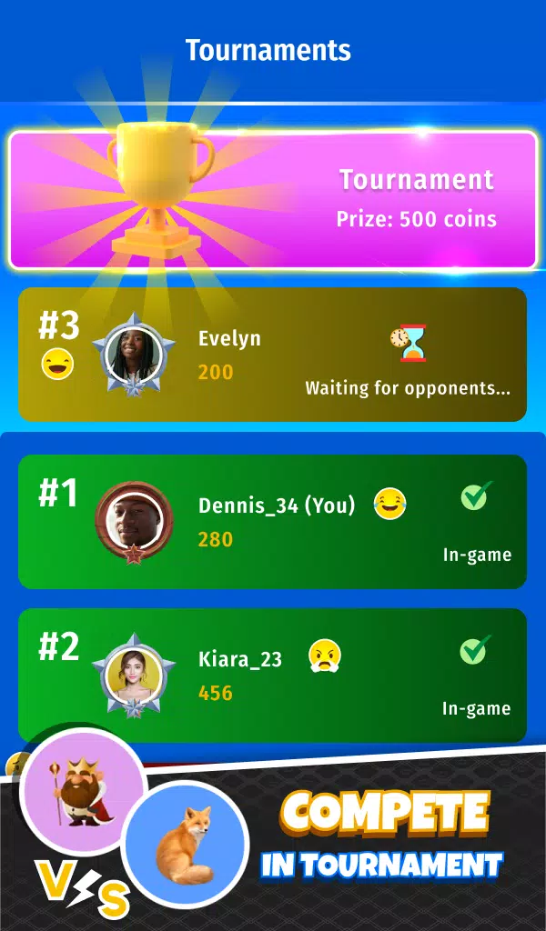 * 在锦标赛中与世界各地的其他玩家竞争,赢取奖励!