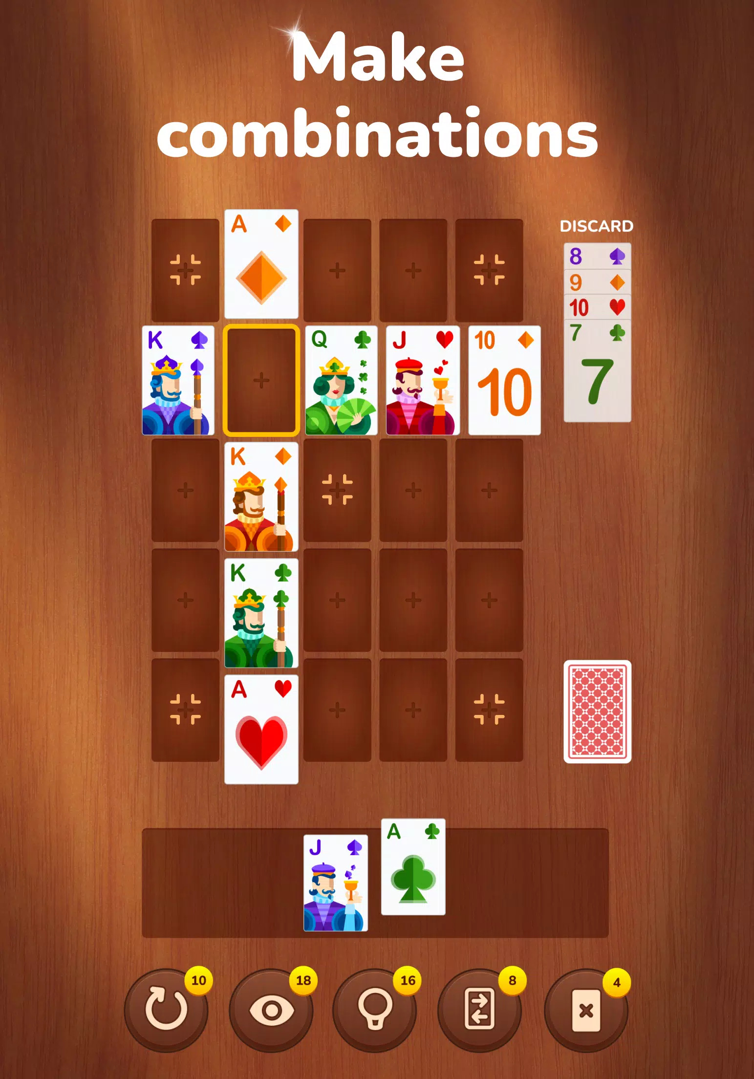 扑克新手?通过直观的指南和提示,边玩边学。已经是纸牌游戏的粉丝?探索一种全新的扑克游戏方式,享受轻松的解谜乐趣。
