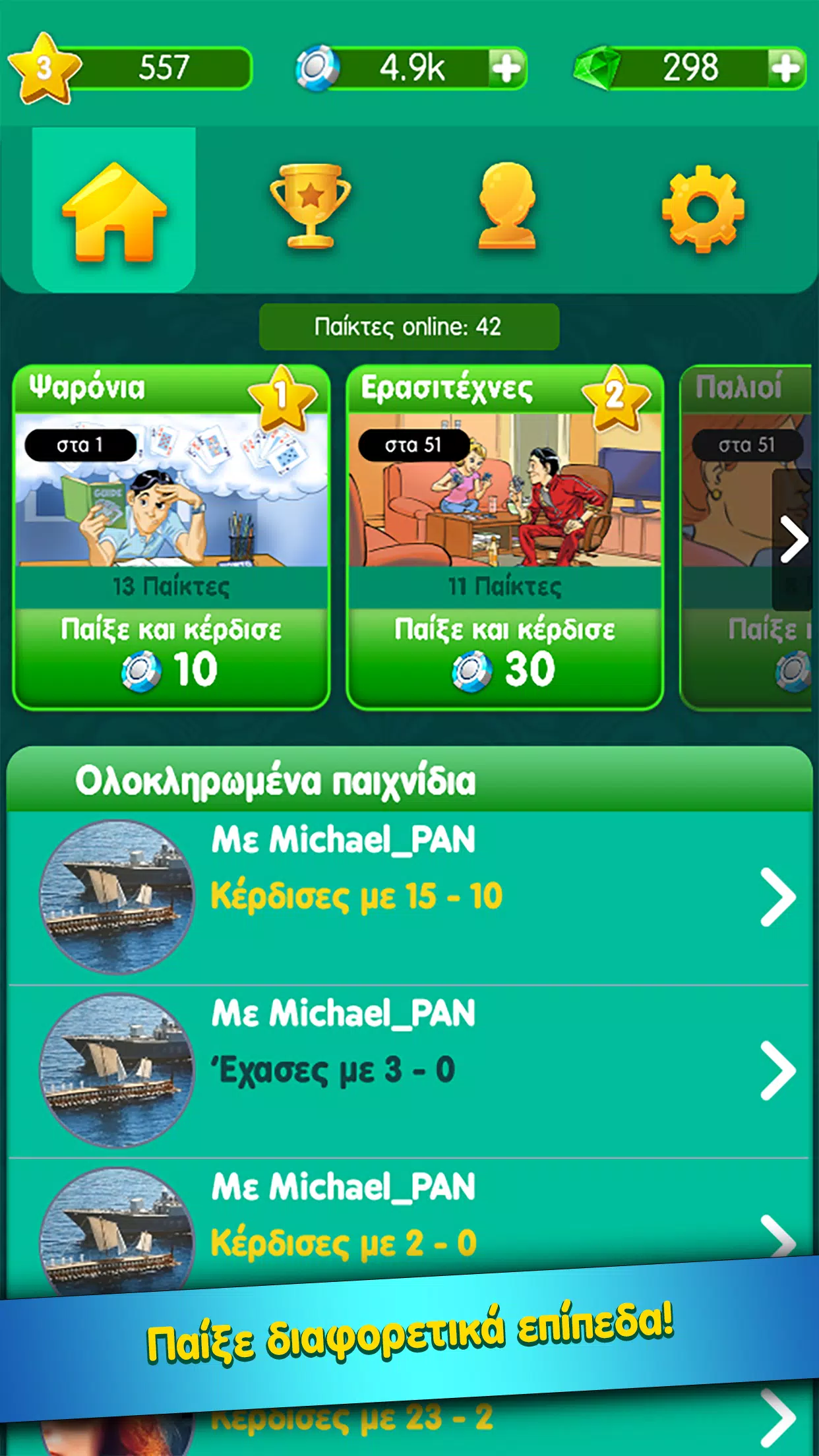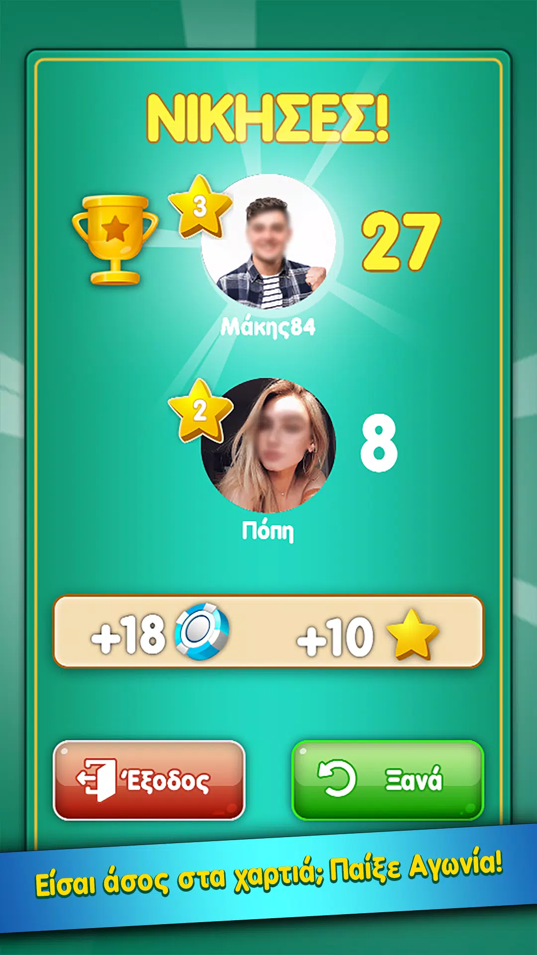 LazyLand 为您提供的四种经典希腊纸牌游戏之一(dry、biriba、agony、tichu)。
