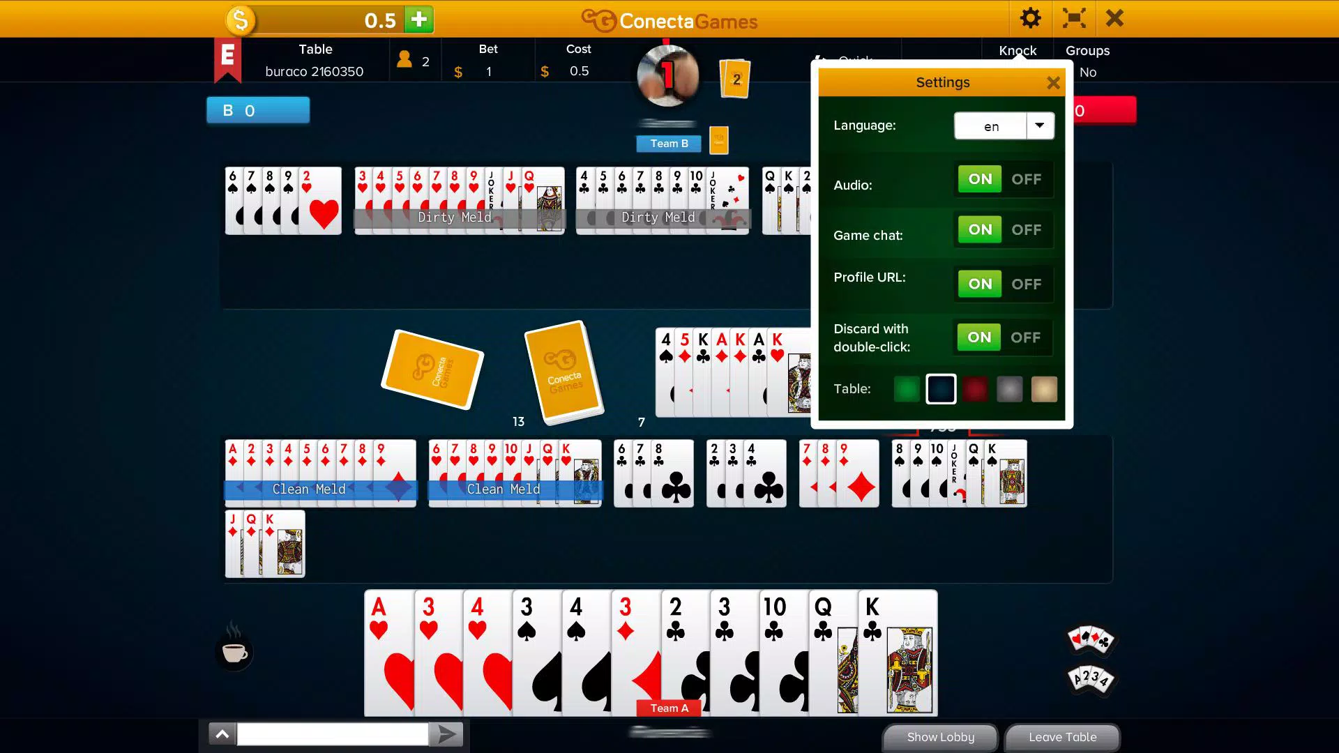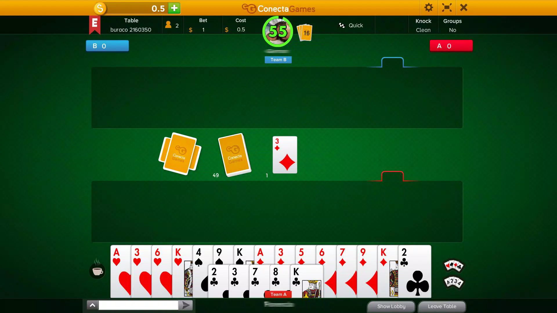 Buraco 是一款拉米牌系列的纸牌游戏。游戏的目标是将同点数和/或同花色的顺子牌组合起来。七张或七张以上的牌组合称为“卡纳斯塔”。您可以与真人一起在线游戏,可以两人一组,也可以独自一人,还可以创建您自己的专属游戏。祝您玩得开心!