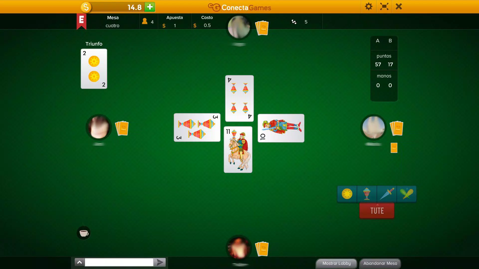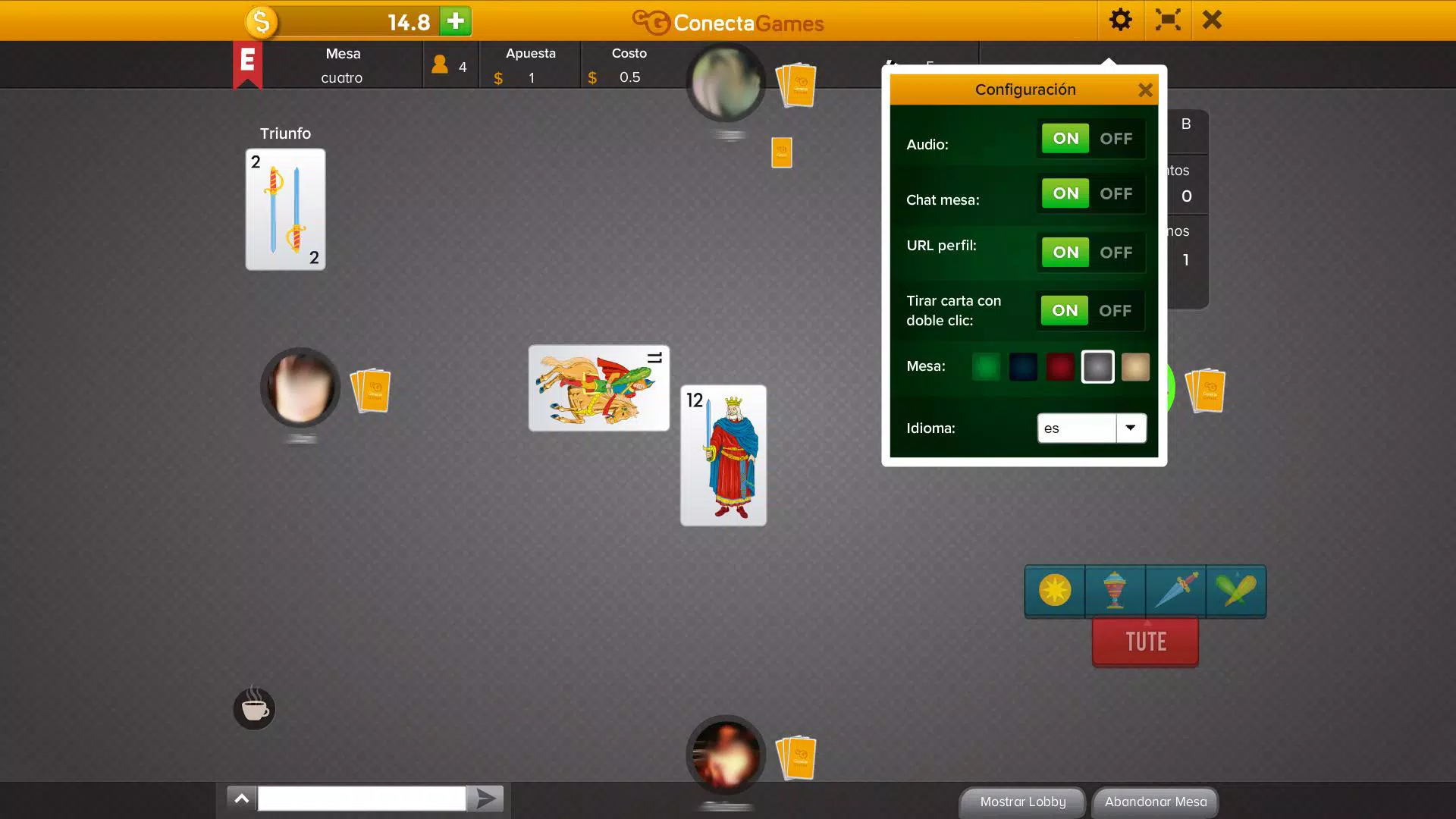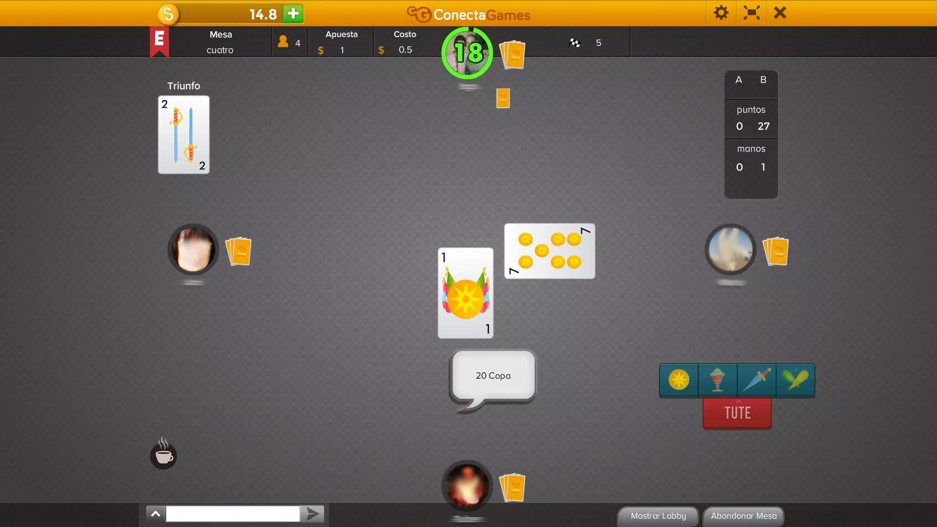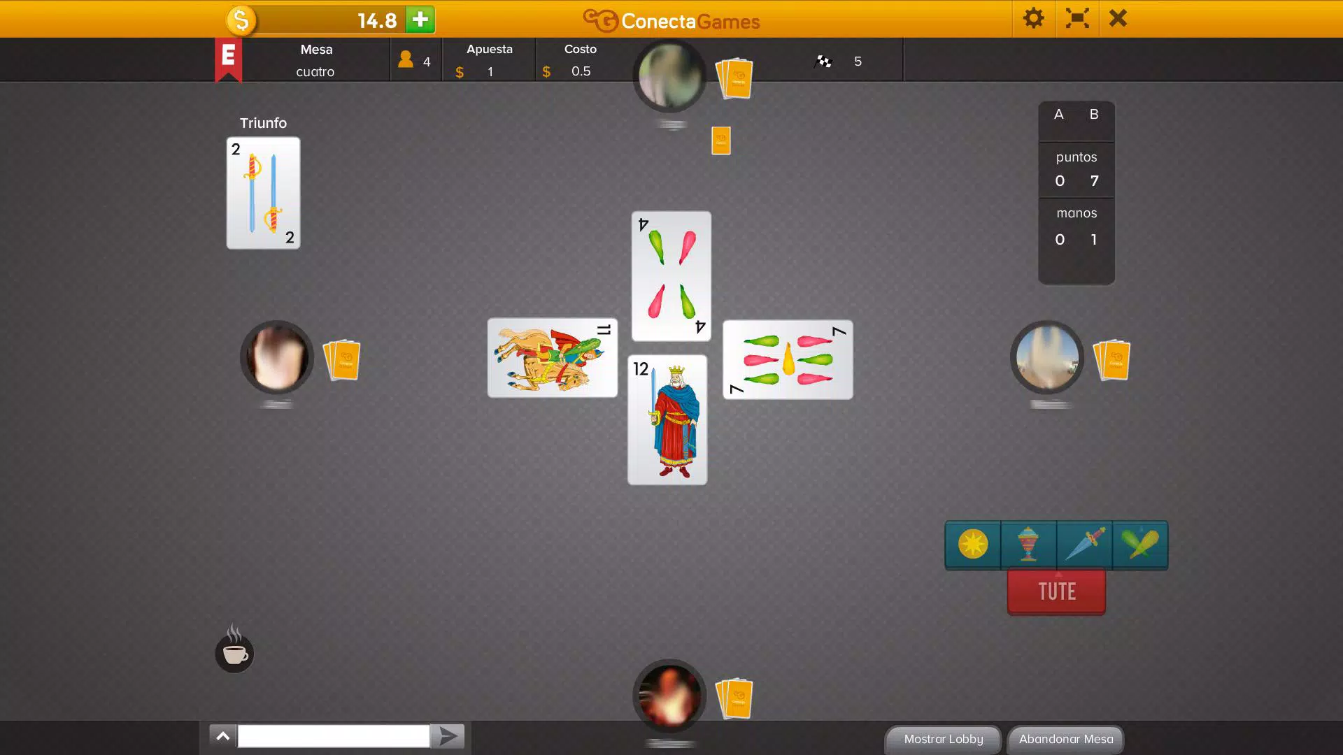 El Tute 是西班牙最受欢迎的纸牌游戏之一,它也在拉丁美洲玩。它由 2 到 5 名玩家单独播放。 4名球员也可以两人一组进行比赛。