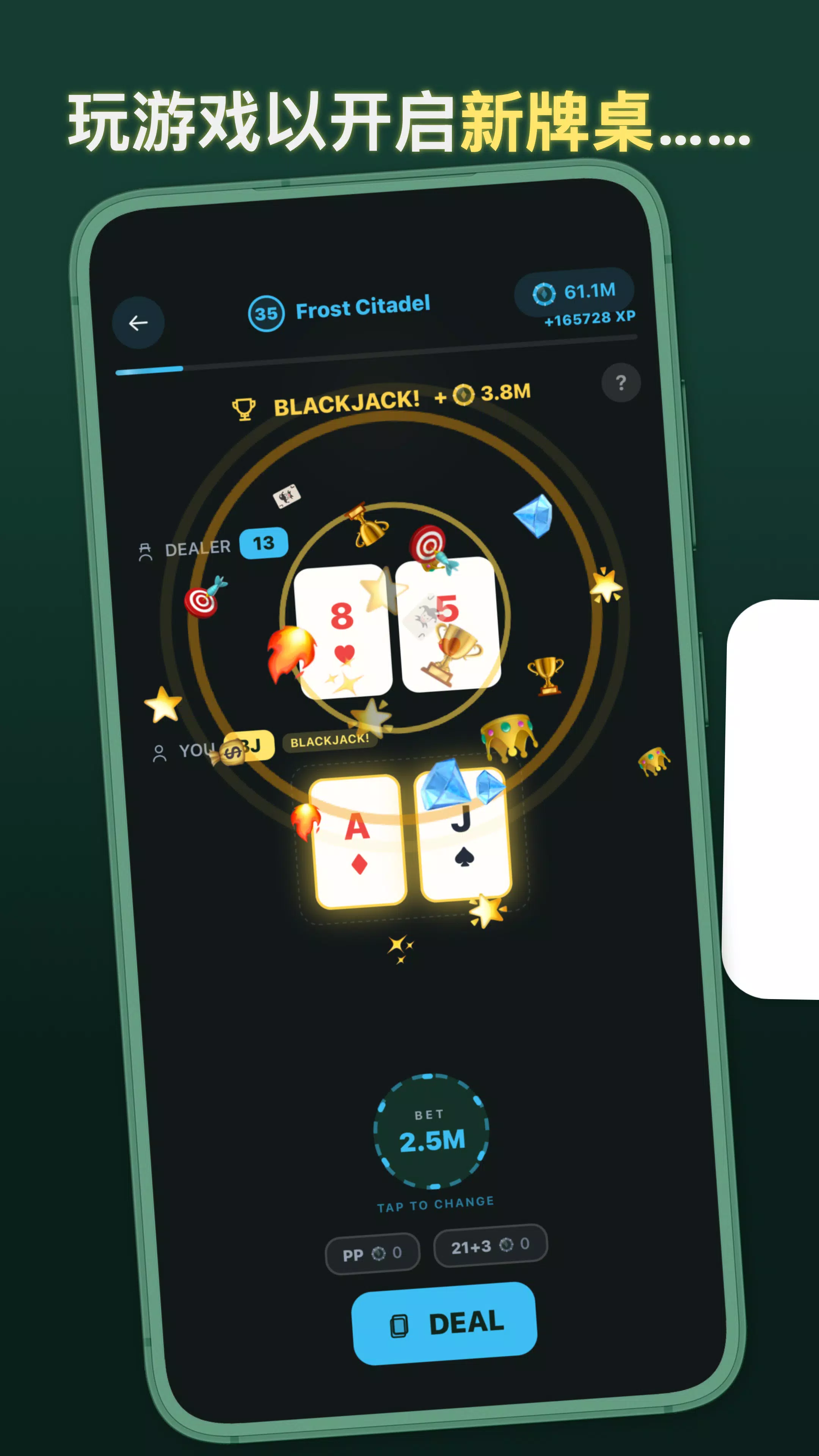 • 离线模式:随时随地享受 21 点——无需互联网连接。