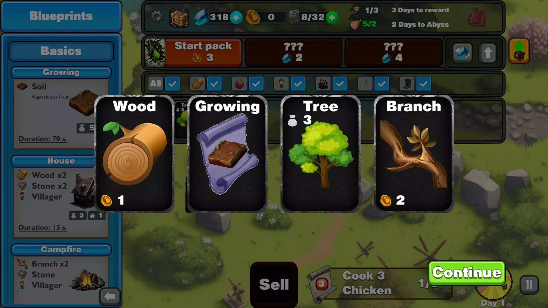 每一天都短暂而饥饿。当一天结束时,进入进食阶段:每个村民都需要食物,否则他们将无法生存。通过增加存储空间来提升卡牌上限,实现农业自动化,并维持村庄的生存。