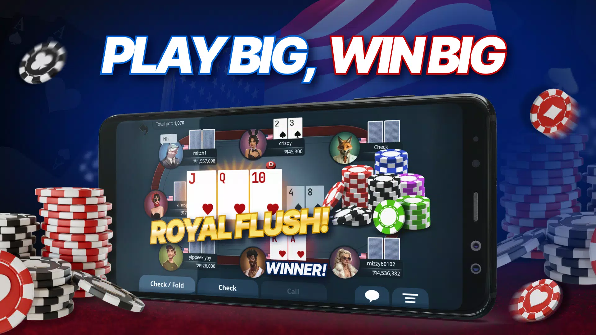 本应用仅供 21 岁以上人士使用,仅供娱乐之用。作为一款社交扑克应用,它不提供真钱赌博,也不提供根据游戏玩法赢取真钱或真实奖品的机会。在本应用中玩游戏或获胜并不意味着将来在真钱赌博中也能获胜。下载和玩游戏无需付费,但您可以在游戏中使用真钱购买虚拟物品。