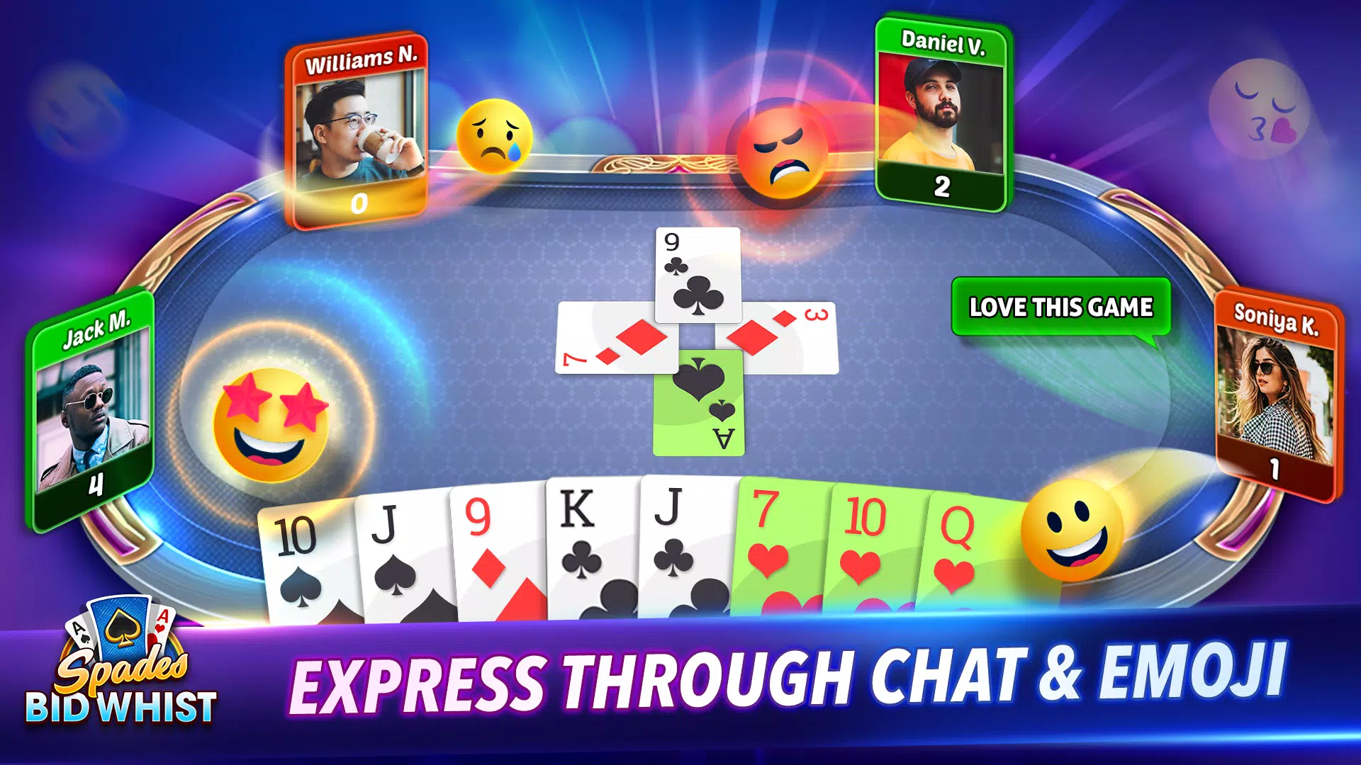 完全免费畅玩:畅享无限游戏,无需任何购买。没错,这是一款完全免费的在线叫牌惠斯特和黑桃纸牌游戏应用,让你无需担心付费,尽情畅玩。