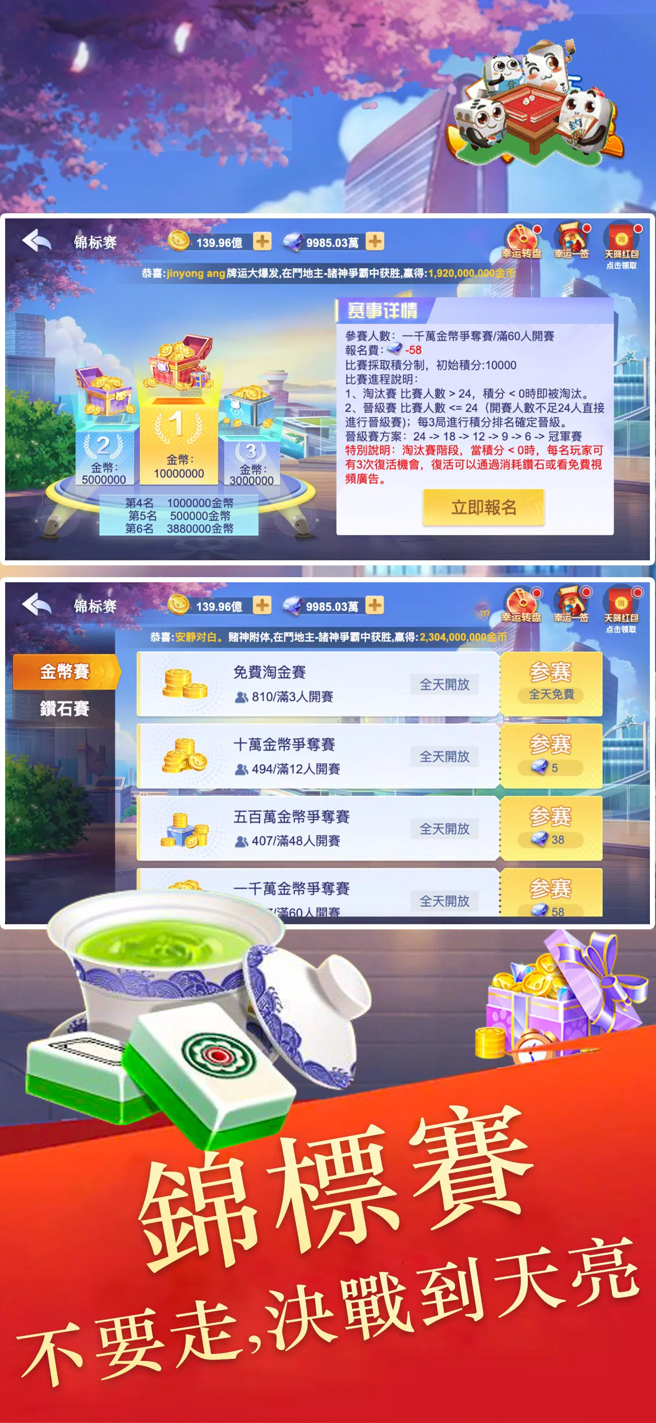 全天人满即开赛,金币赛、钻石赛,上亿奖励。