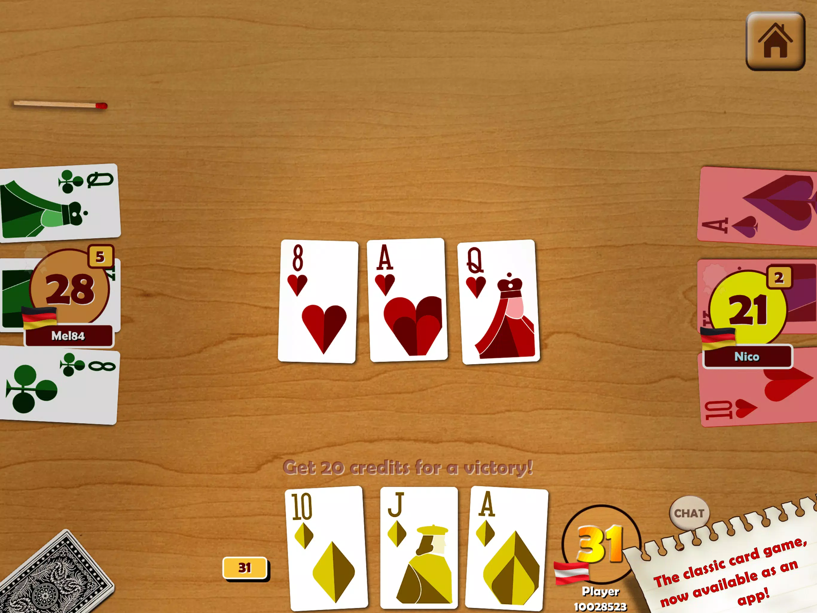 🃏 率先用三张牌获得 31 分,即可获胜!与好友一起畅玩,或在在线多人游戏中与世界各地的玩家互动 🌍。
