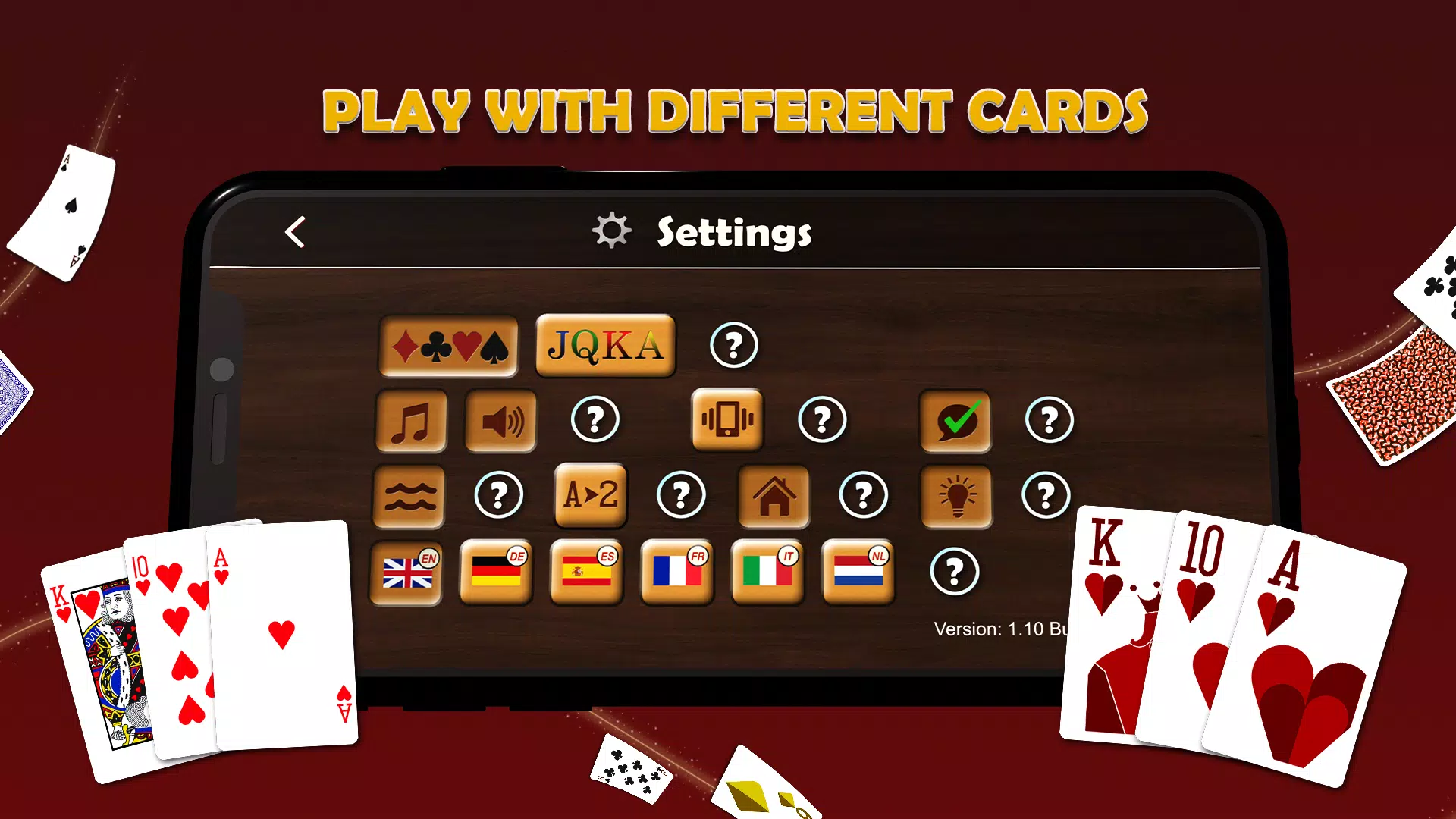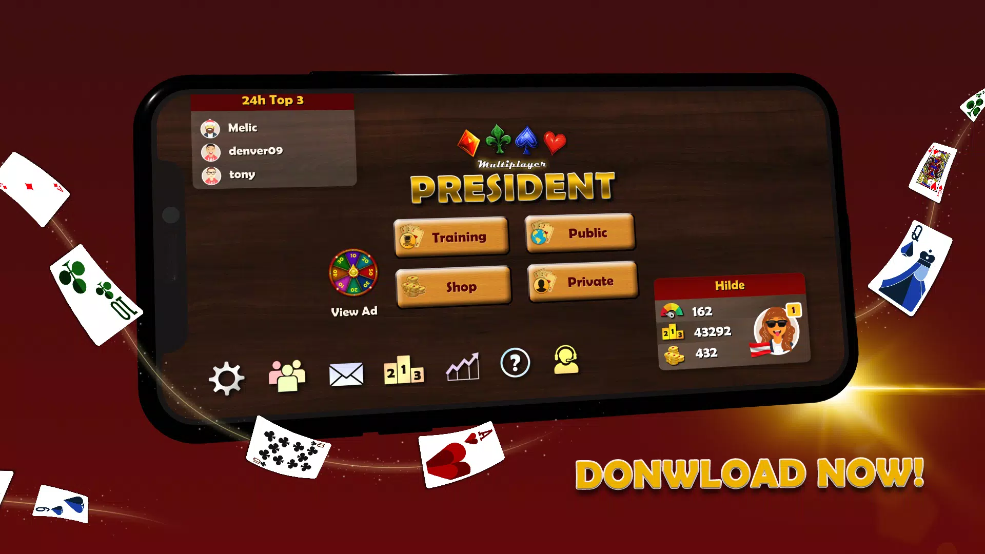 如果您热爱数据,那么您一定会更加喜欢我们的应用!我们会追踪您的游戏数据,包括您的胜负记录、每局游戏平均时间和排行榜排名。在《总统》游戏中,您可以提升牌技,与来自世界各地的玩家一较高低,并享受无穷乐趣! 🔝 无论您是尤克牌、拉米牌、洞牌、Phase 10 的爱好者,还是黑桃牌、克里比奇牌、贝洛特牌、塔罗牌、红心牌、婚姻牌或羊头牌等经典纸牌游戏的爱好者,都能在这里找到自己的乐趣!