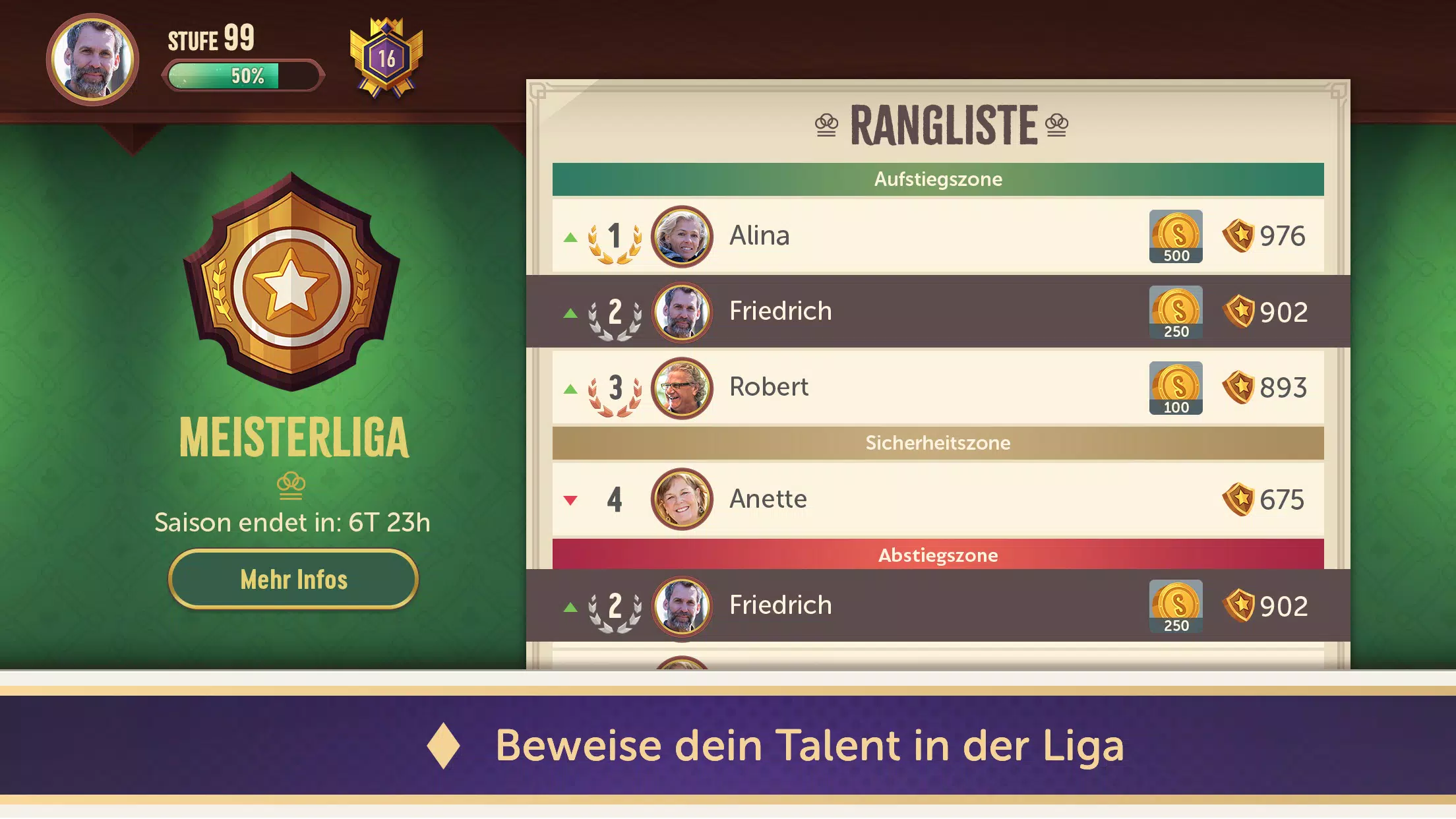♣ 在联赛模式中证明您的实力:攀登联赛排行榜,成为冠军!