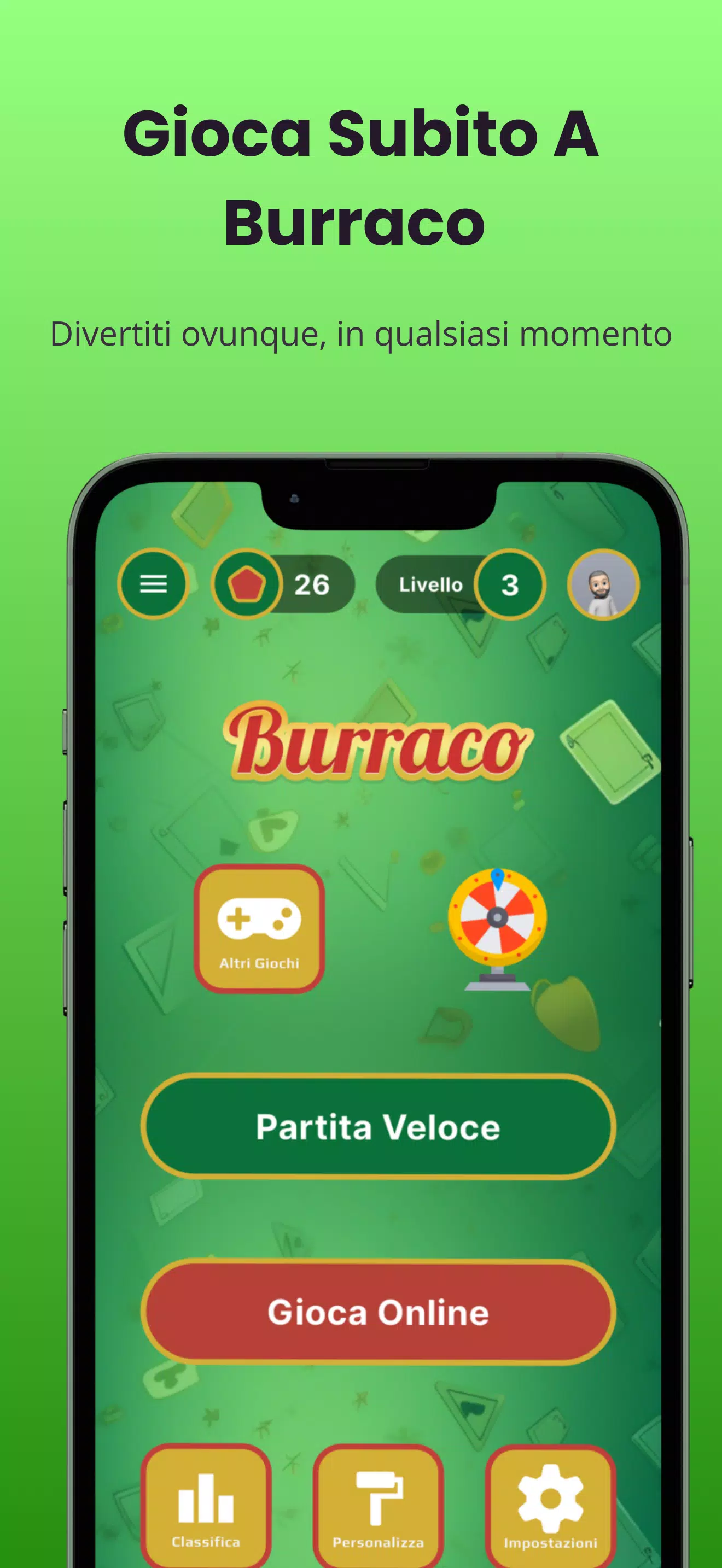 该游戏非常适合那些刚接触 Burraco 的人,或者想要立即快速玩游戏的人,而无需等待太多步骤。