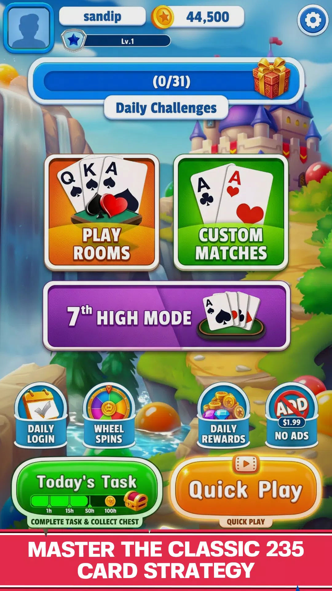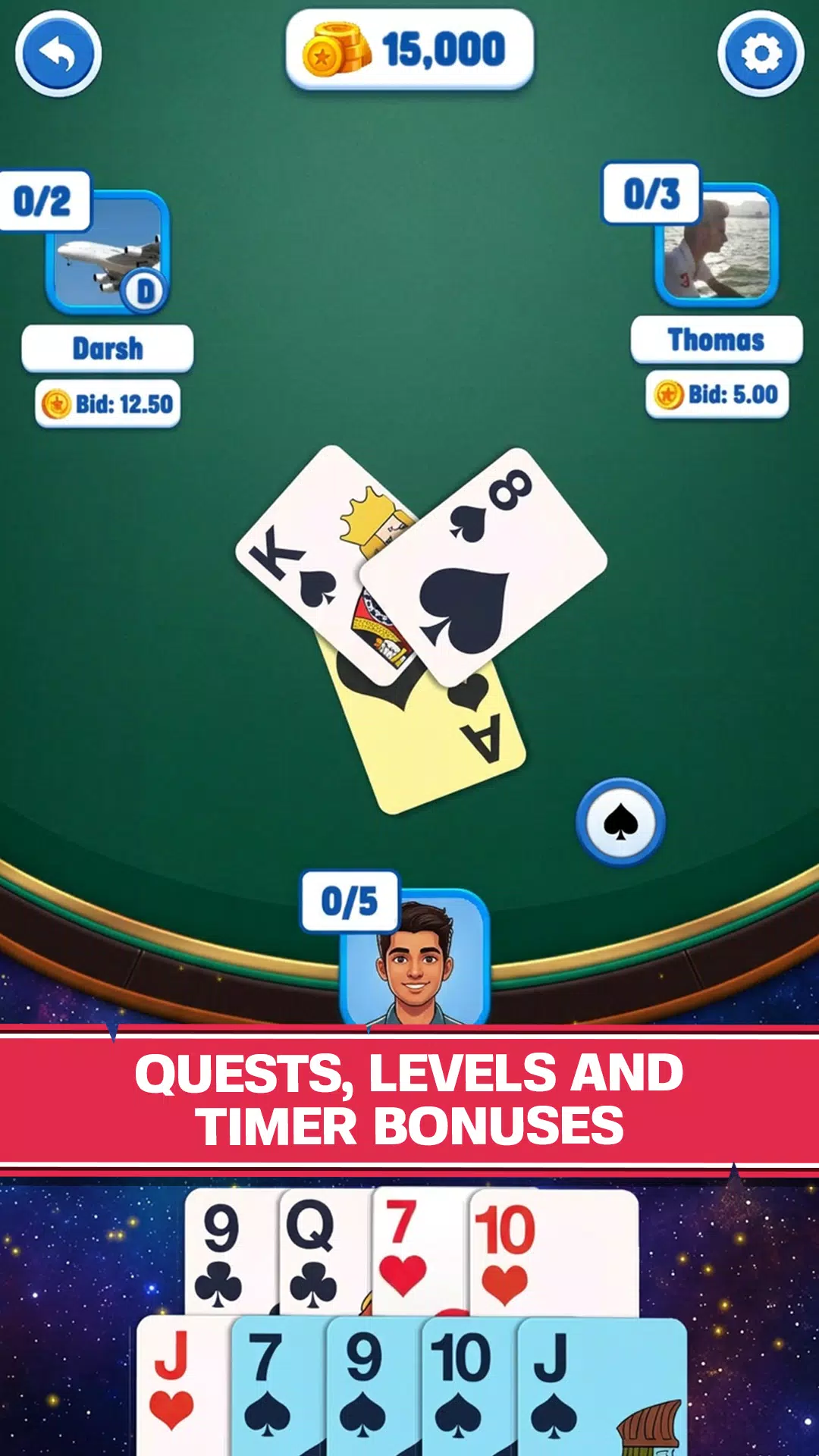 体验经典 235 纸牌游戏的原汁原味规则。精心策划您的策略,在恰当的时机打出正确的牌,智胜您的对手。