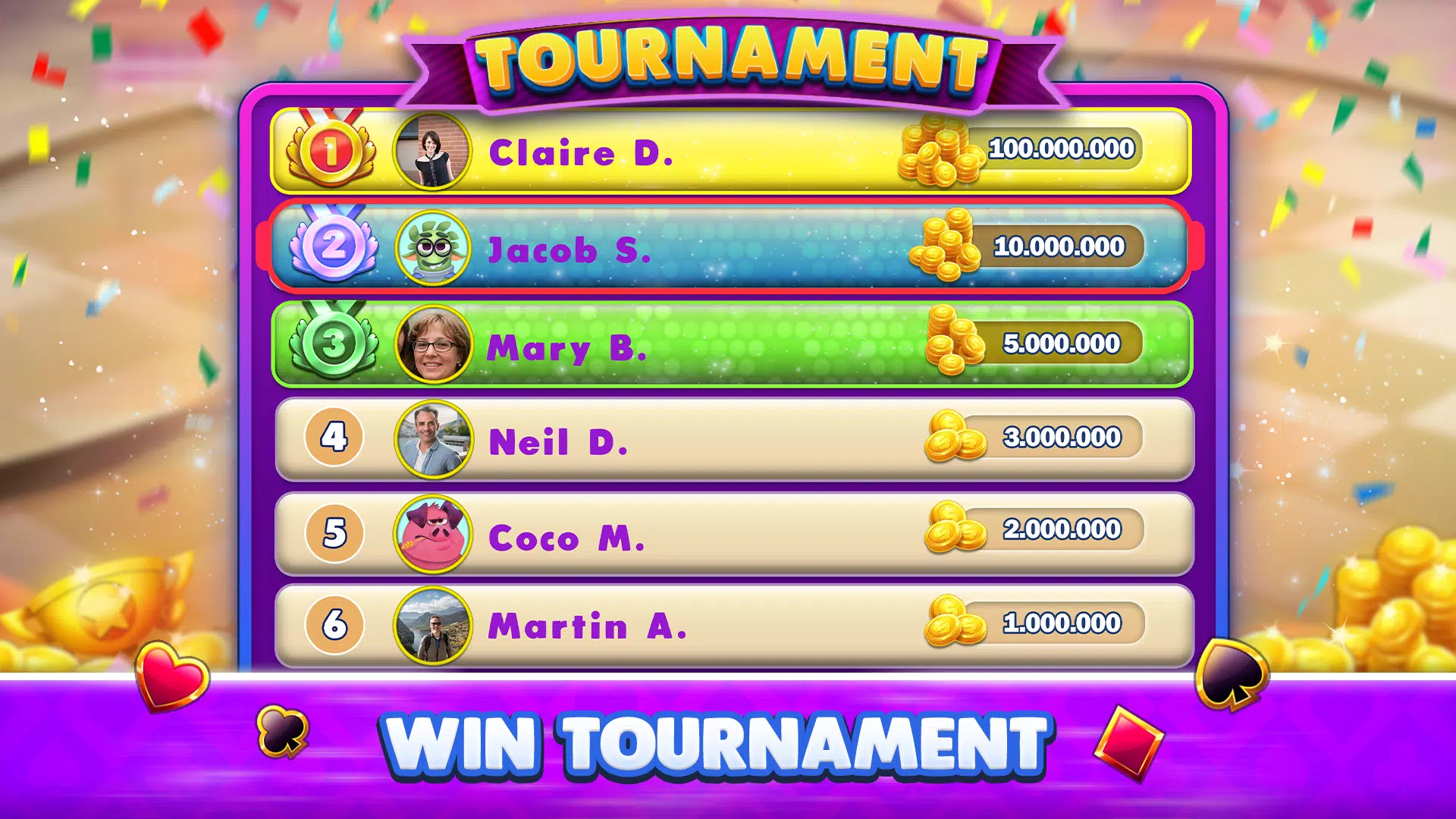 赢取筹码,在高额投注房间畅玩,并不断攀升排行榜