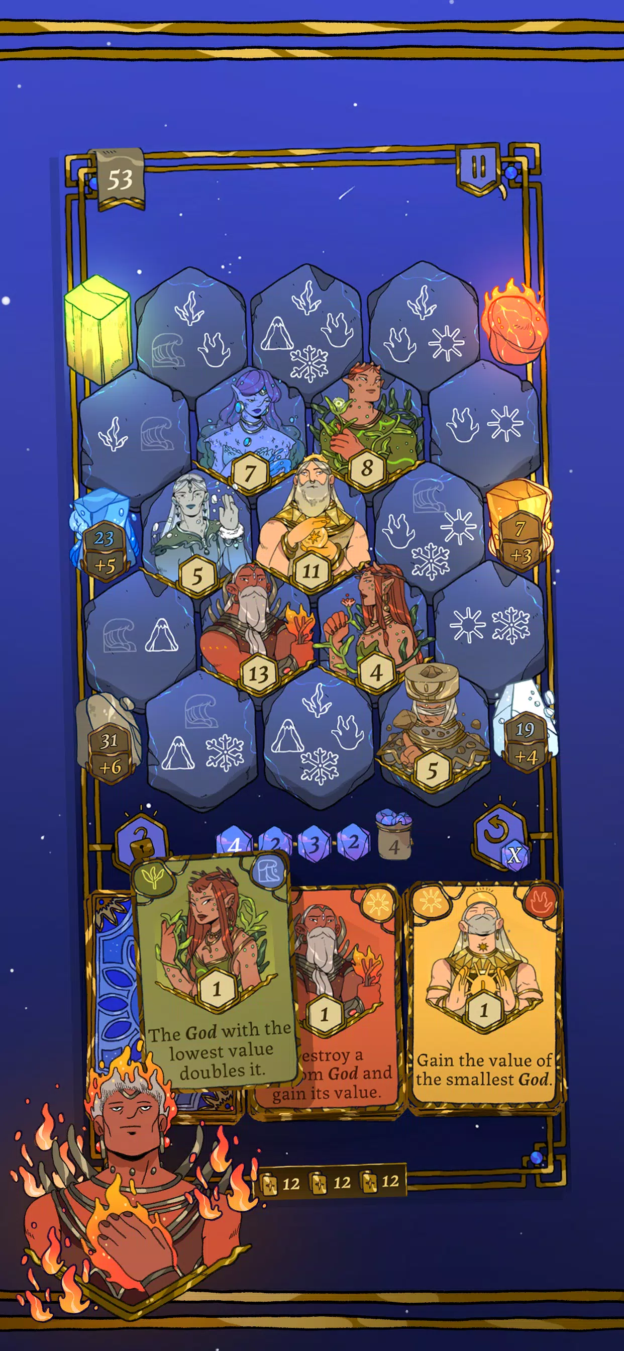 – 格子放置解谜: 策略性地放置神灵以触发强力技能