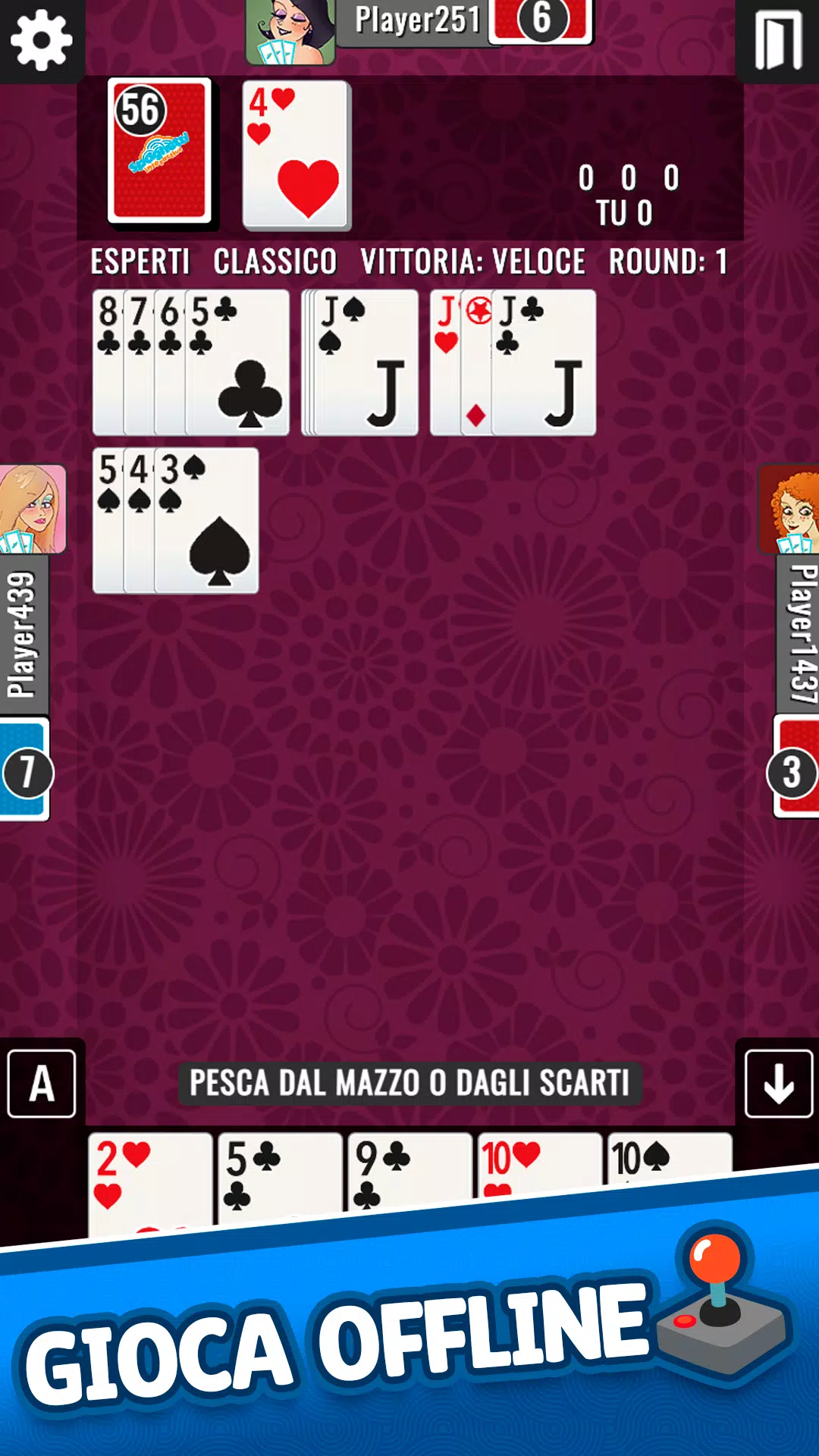 玩拉米纸牌游戏 (Rummy),这是全世界都喜爱的著名纸牌游戏,有了拉米纸牌 Plus,乐趣无穷!在激动人心的在线比赛中挑战来自意大利或世界各地的朋友和玩家,提升排名并展示您的技能。通过多人游戏模式,您可以与真正的对手竞争或挑战计算机来完善您的策略。