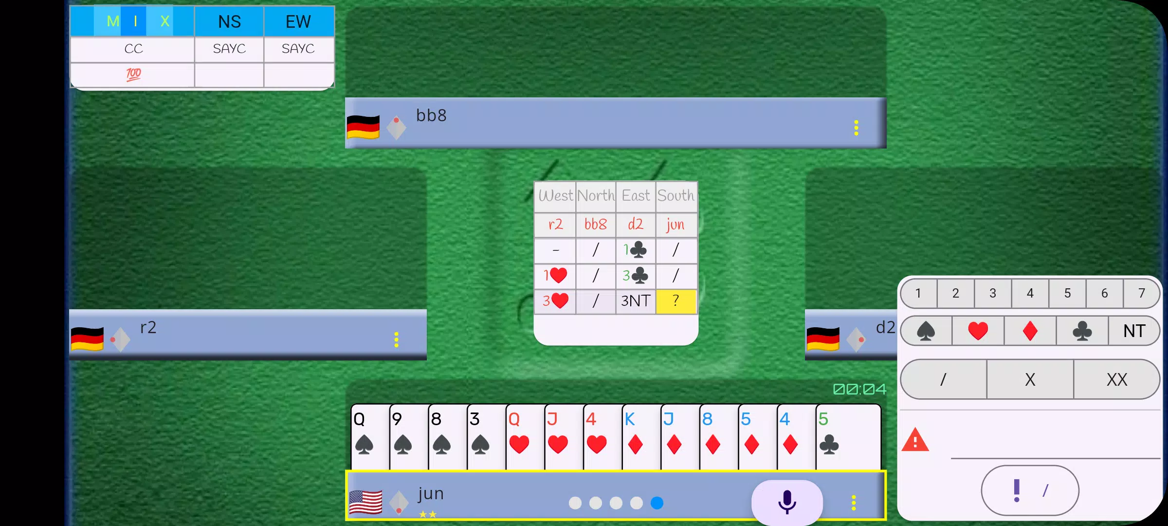 与世界各地的真实玩家和云端 AI 机器人在线畅玩桥牌游戏。