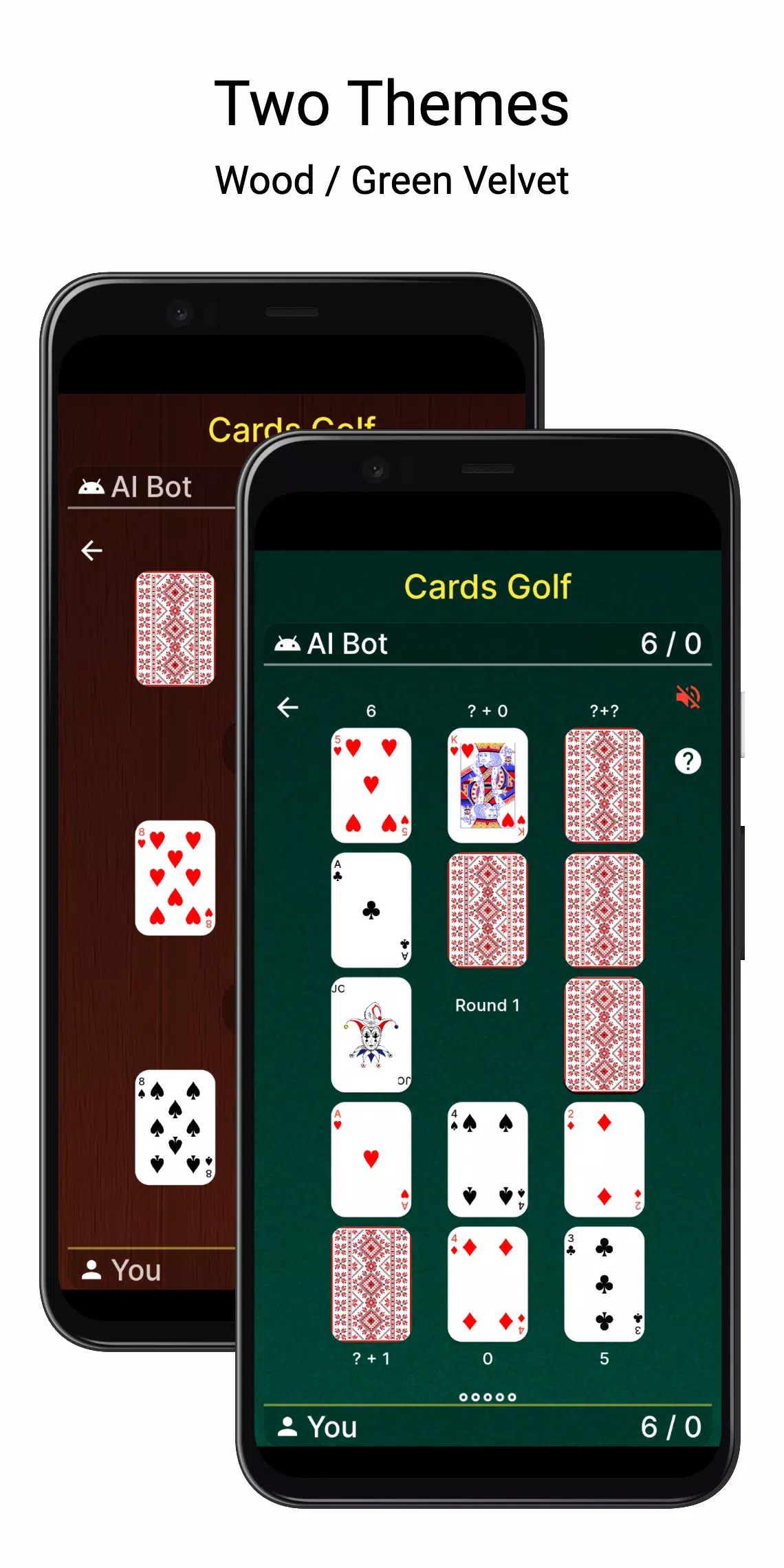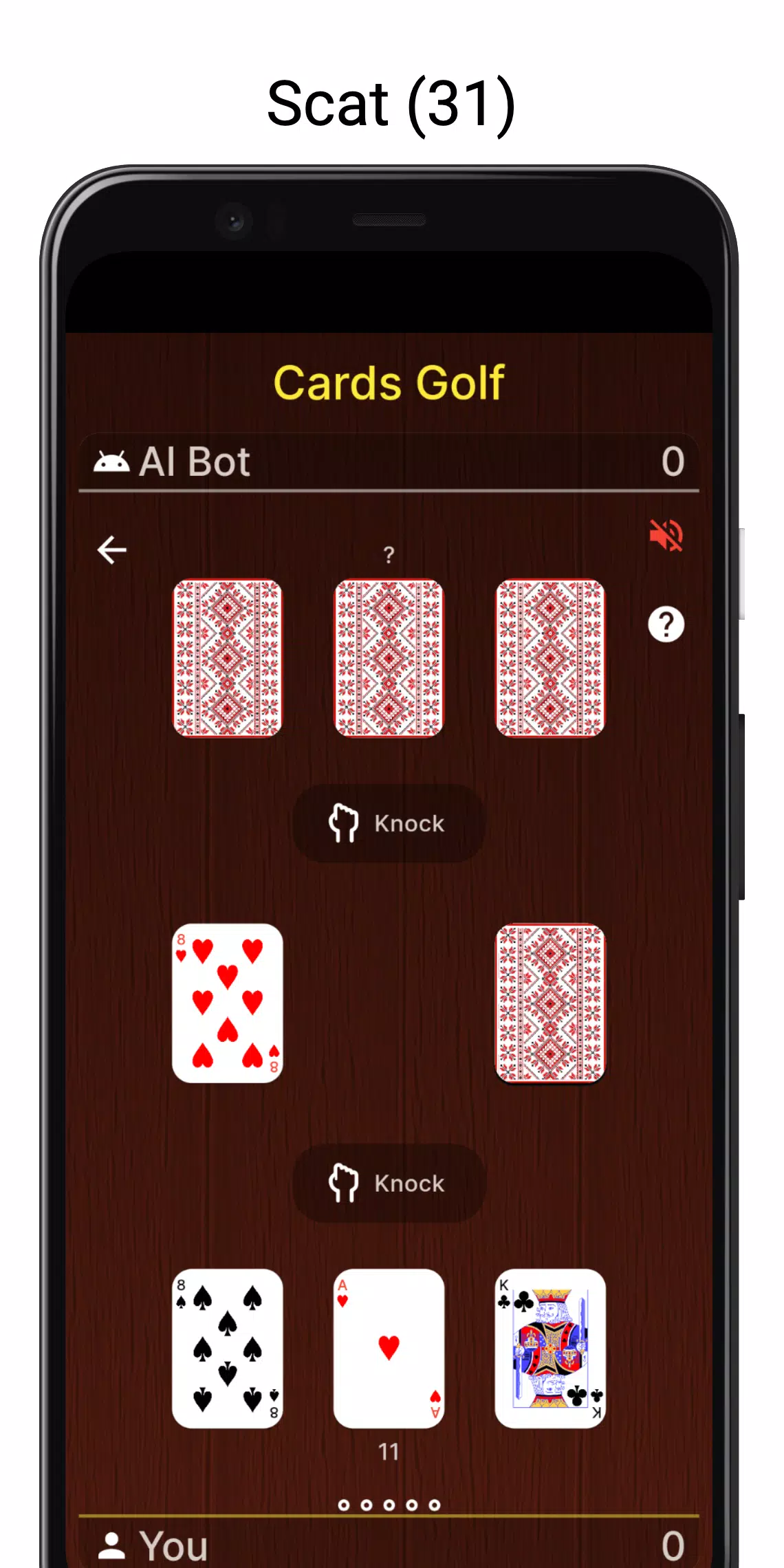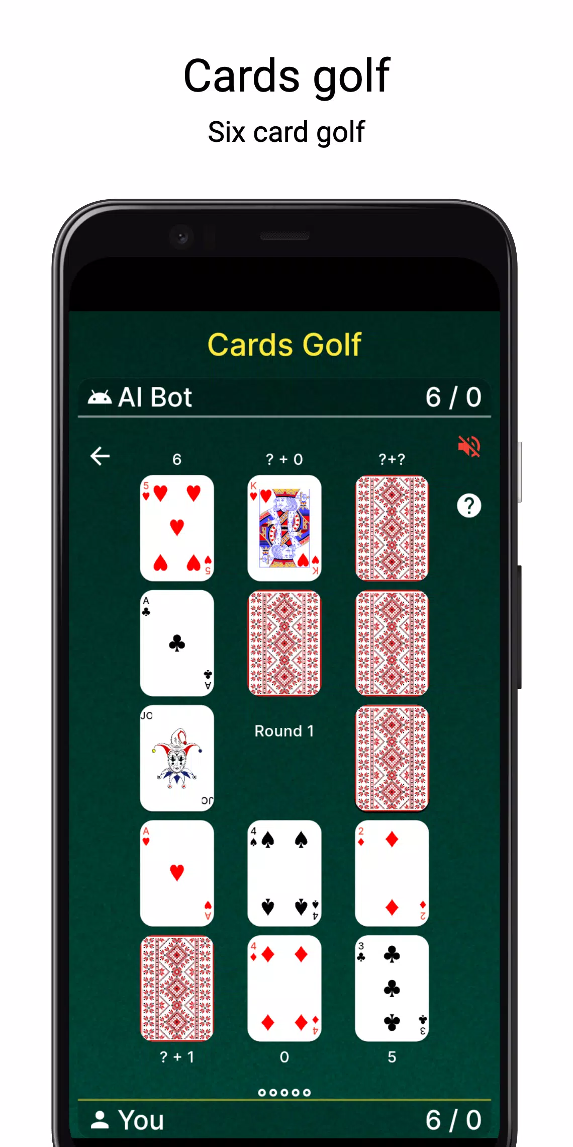 这款应用包含三款游戏:四张牌高尔夫、六张牌高尔夫和斯卡牌游戏。您可以从“设置”中选择您喜欢的游戏。