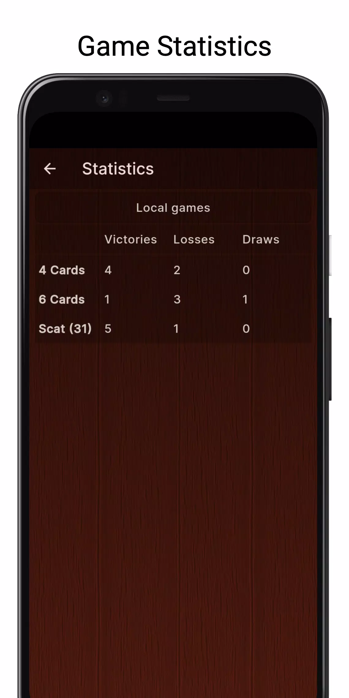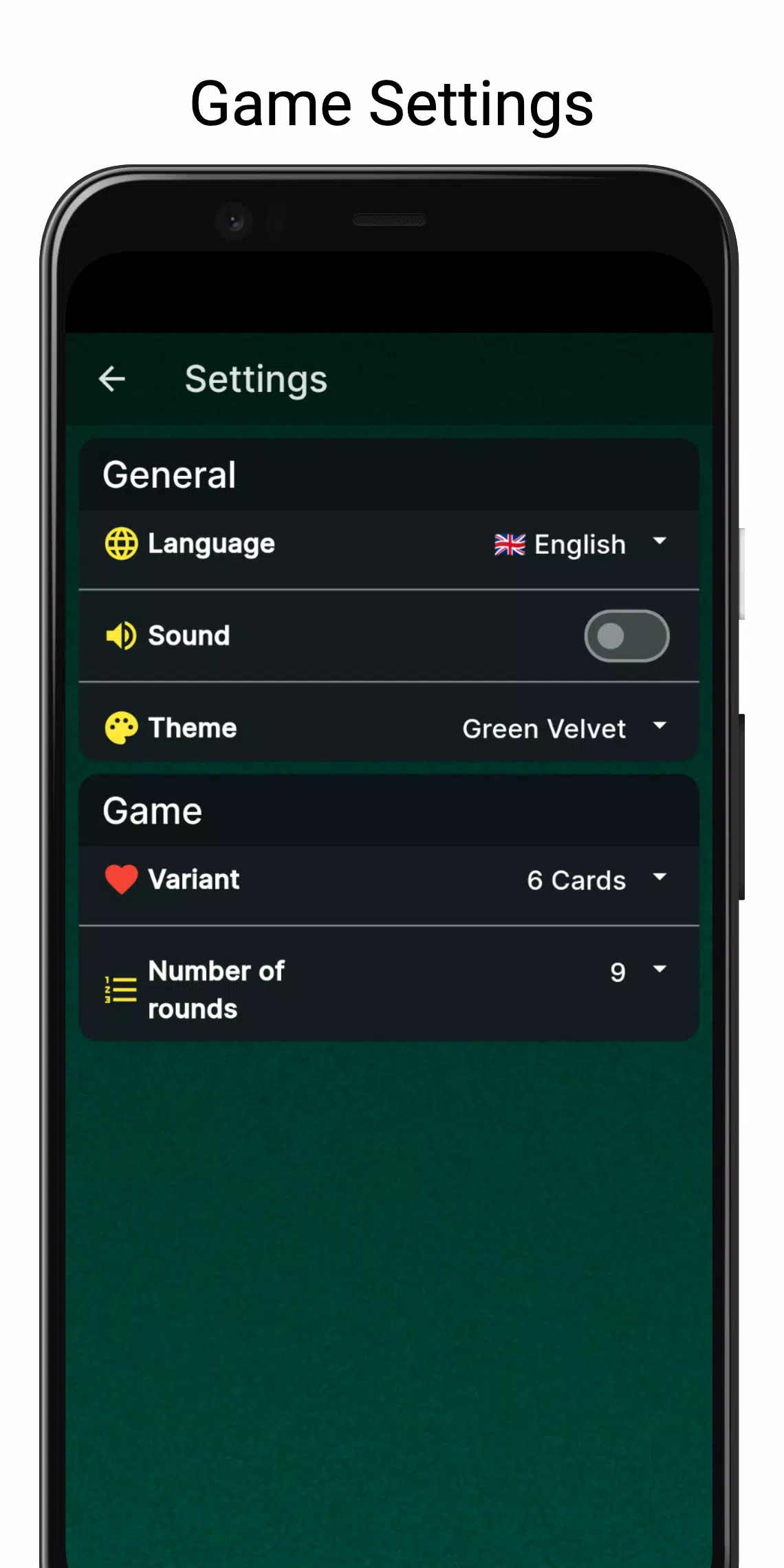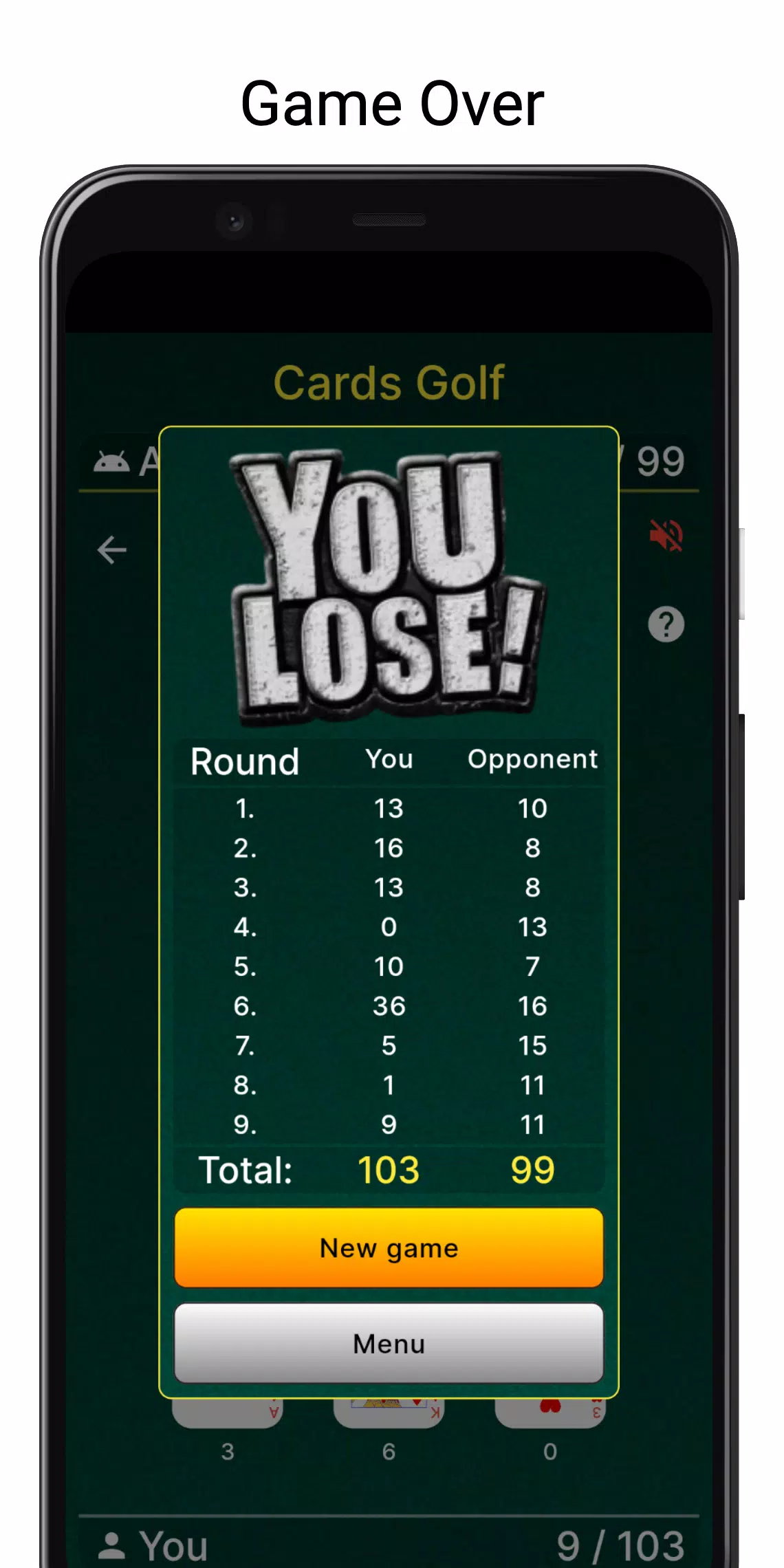 这款应用包含三款游戏:四张牌高尔夫、六张牌高尔夫和斯卡牌游戏。您可以从“设置”中选择您喜欢的游戏。