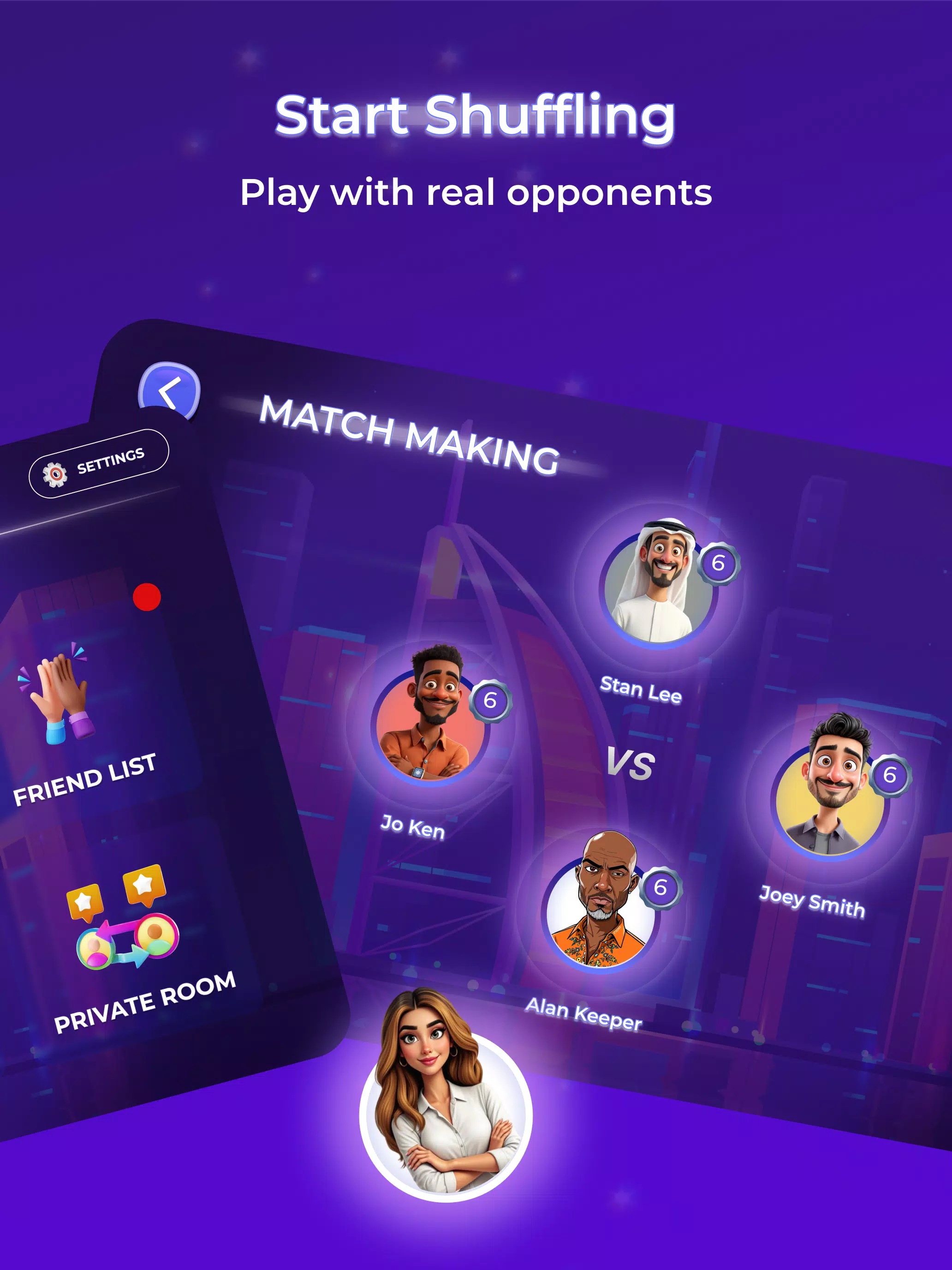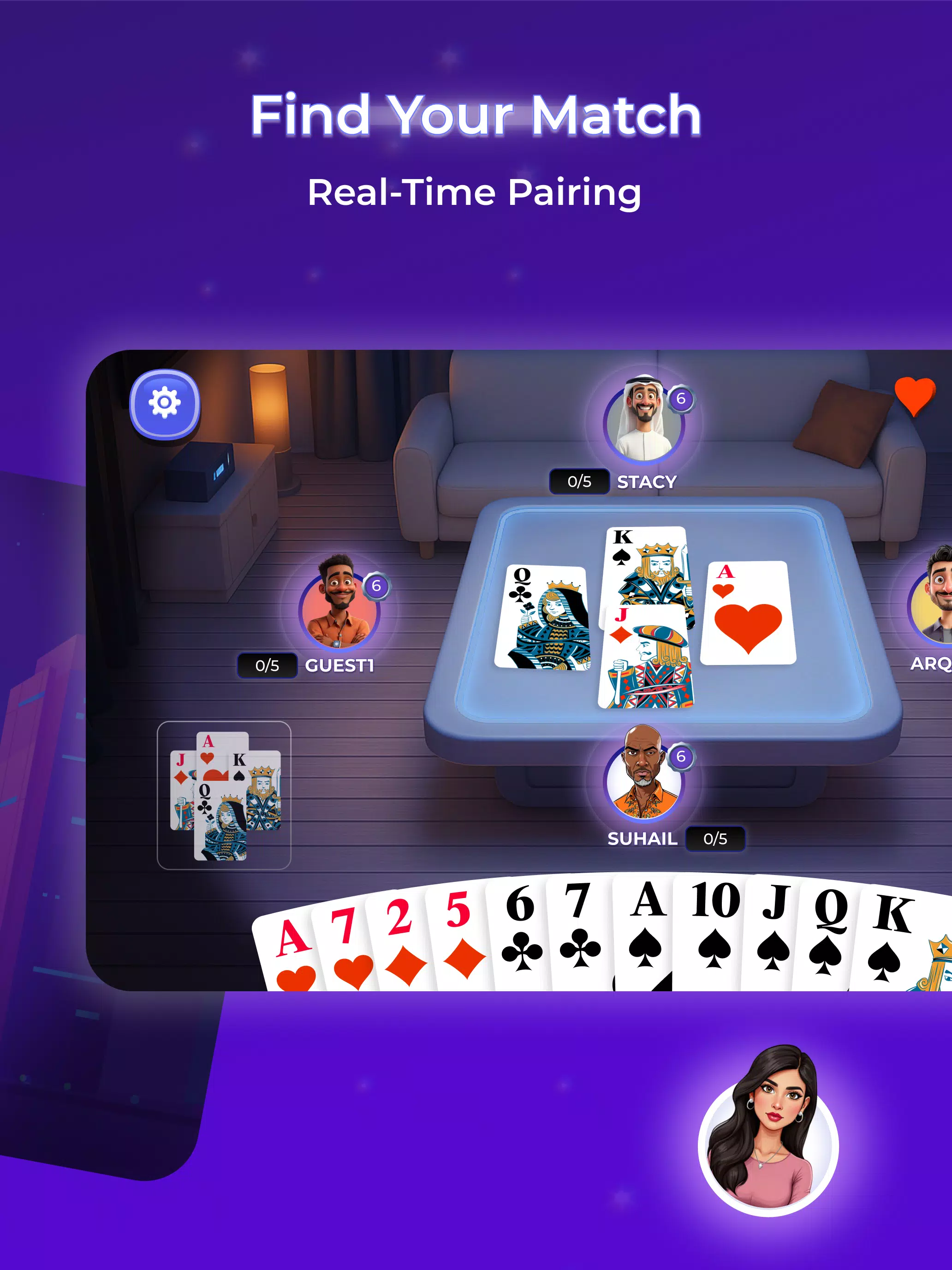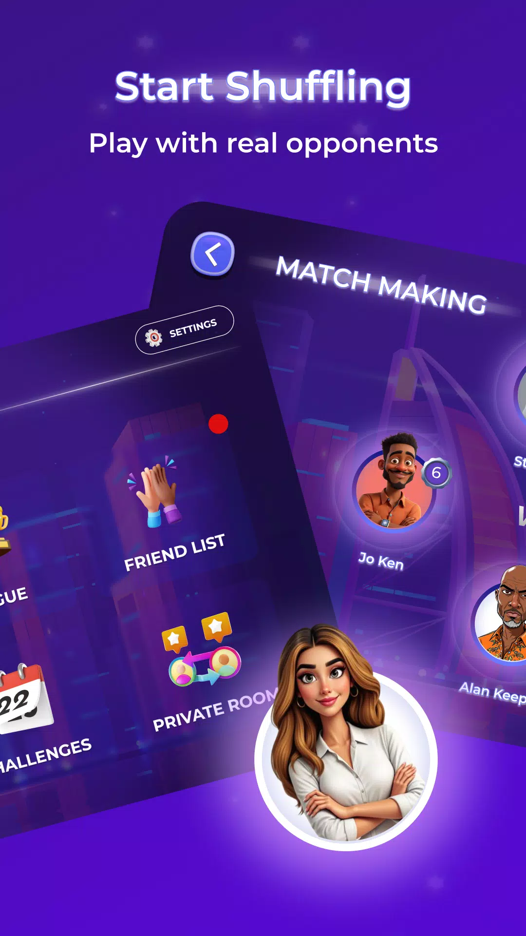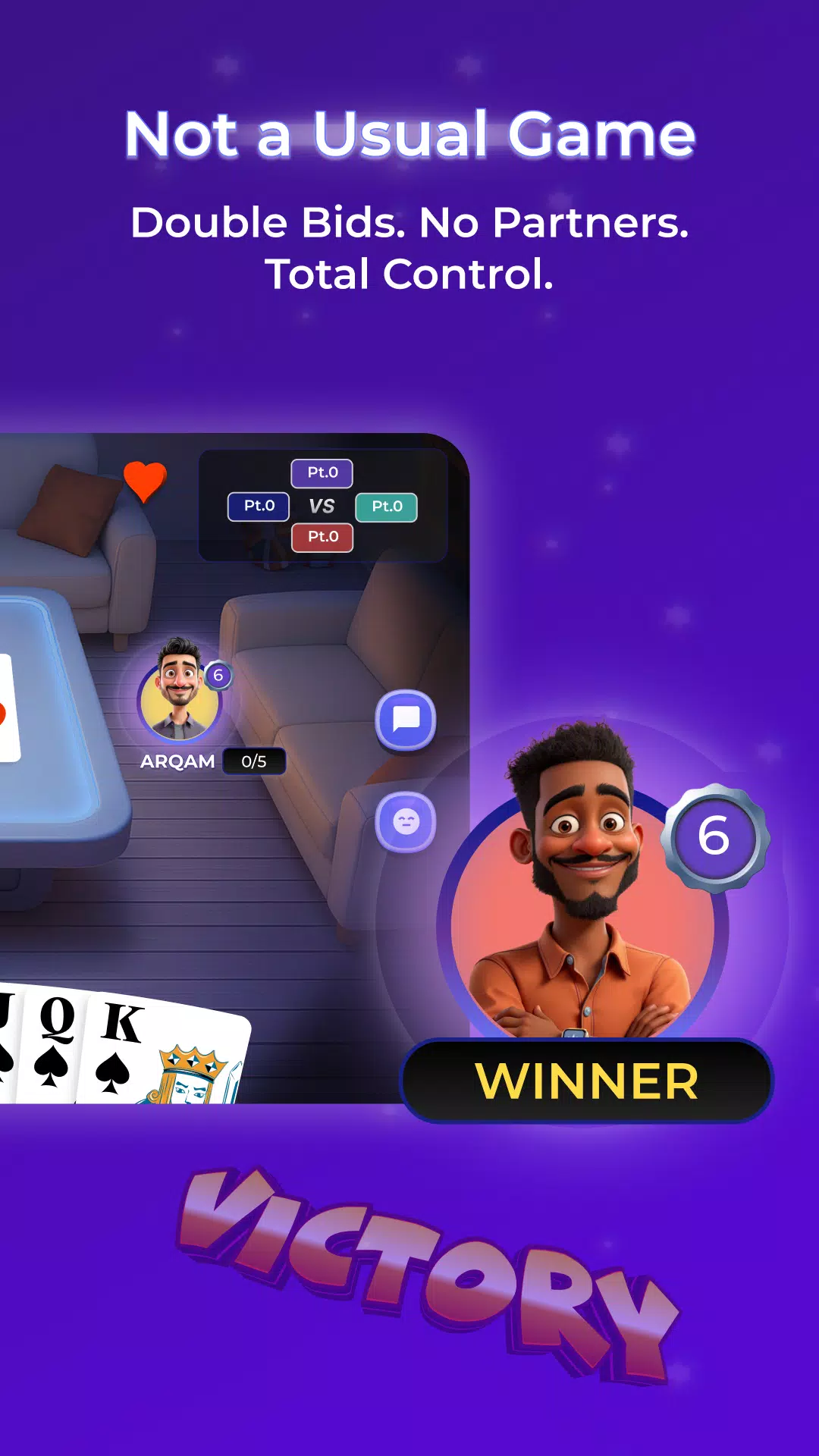 5absa 为单人战士重新构想了经典的 Tarneeb。无需搭档,无需借口。在实时 1 对 1 对 1 对 1 的战斗中匹配,在热身模式中智胜智能机器人,并掌握颠覆传统的双重叫牌系统。准备好一鸣惊人了吗?