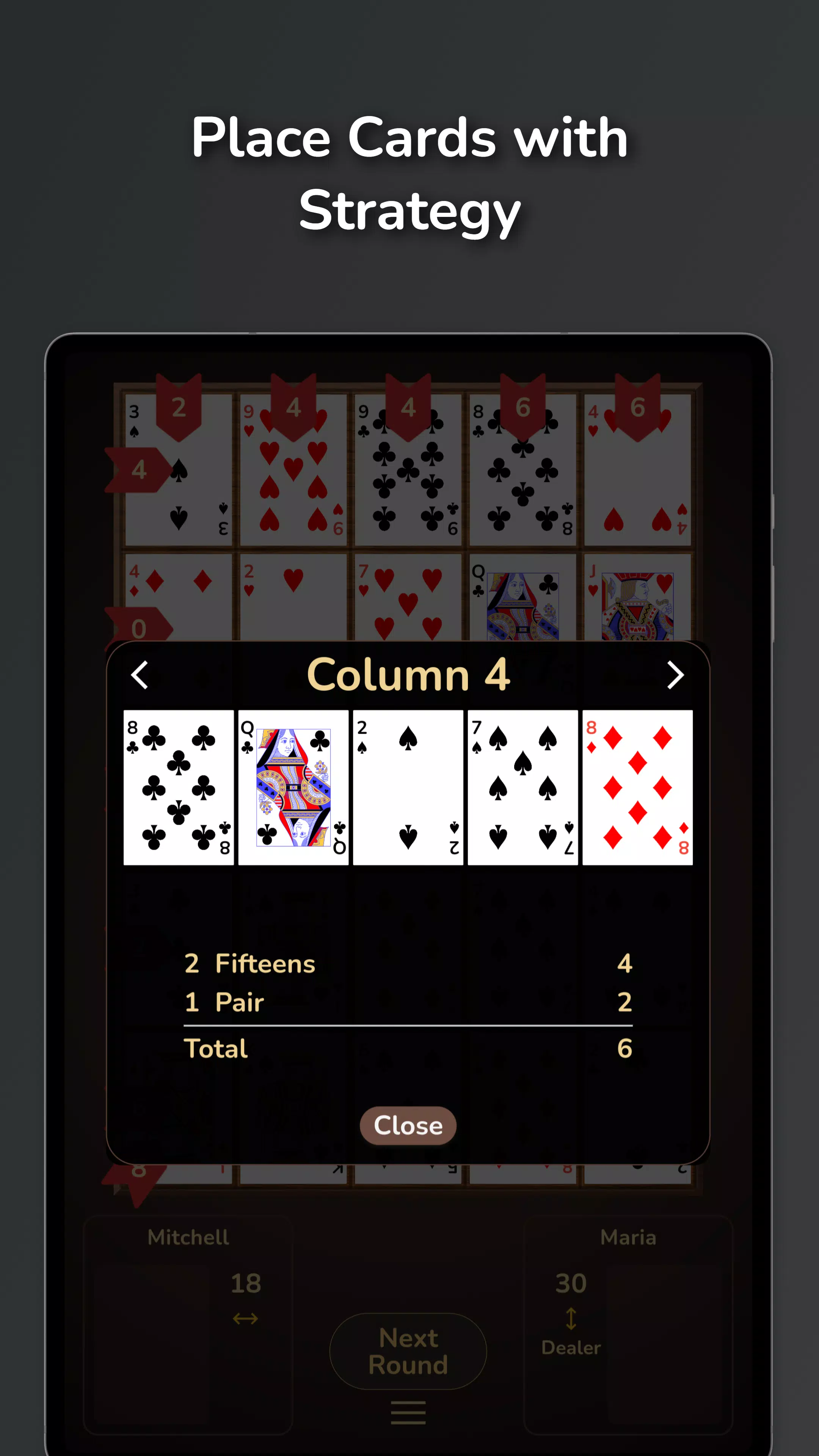 如果您已经熟悉克里比奇,那么 Cross Cribbage 很容易上手;如果您从未玩过克里比奇,它也能让您以有趣的方式体验克里比奇的魅力。这款游戏非常适合克里比奇爱好者、纸牌策略游戏玩家、益智游戏玩家或喜欢挑战智力型双人游戏的玩家。