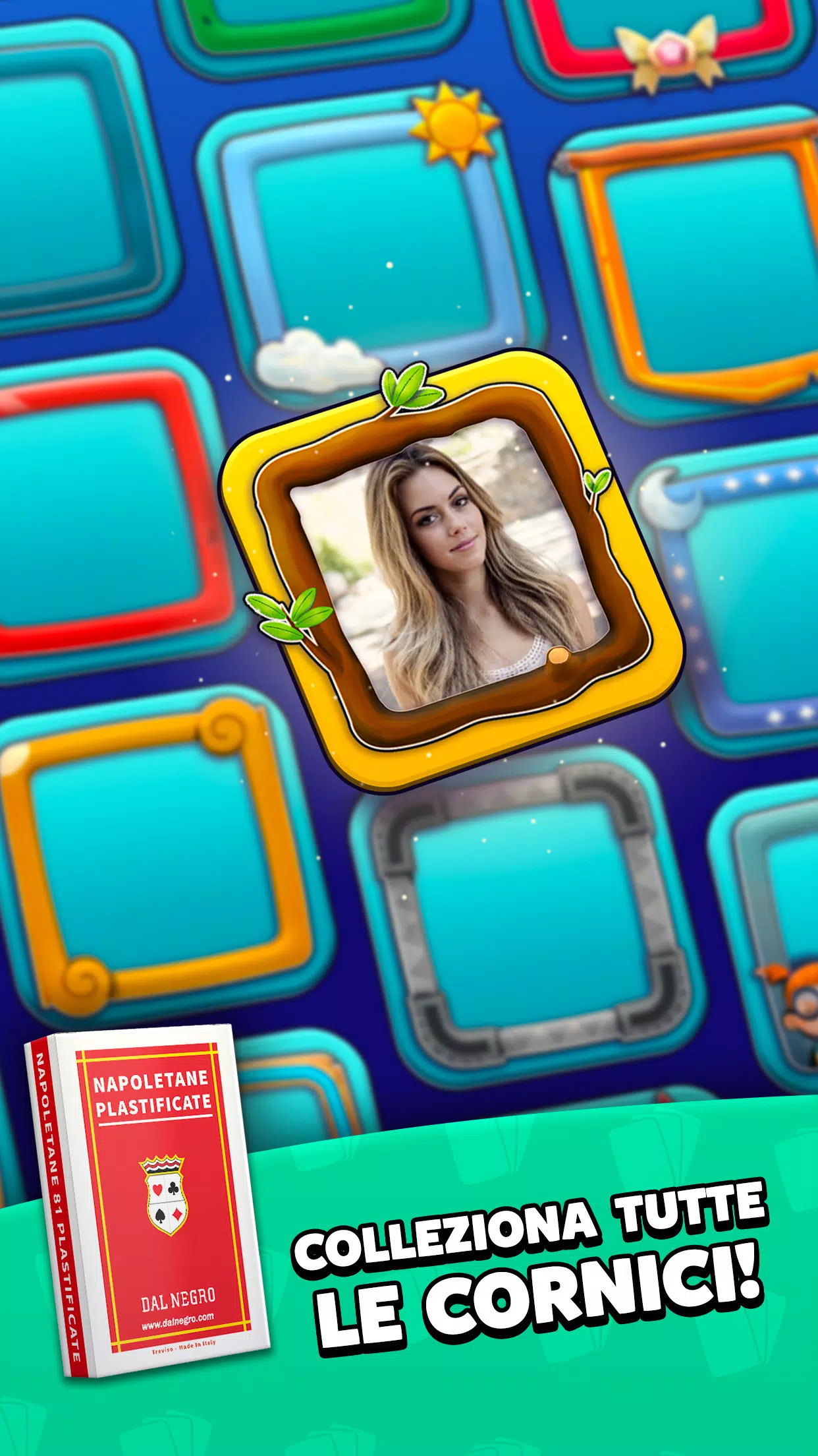 从各种趣味角色中选择您喜欢的图案,并从收藏相框中挑选您最爱的图案!体验最有趣的意大利卡牌游戏。您可以使用任何设备畅玩;原版Dal Negro免费版Briscola已针对智能手机和平板电脑进行了优化。原版 Dal Negro 免费 Briscola 游戏是经典家庭游戏之一,其他经典游戏还包括 Scopa、Solitaire、Burraco、Tressette、Scopone Scientifico、Tombola、Bingo、Checkers 和 Connect Four。
