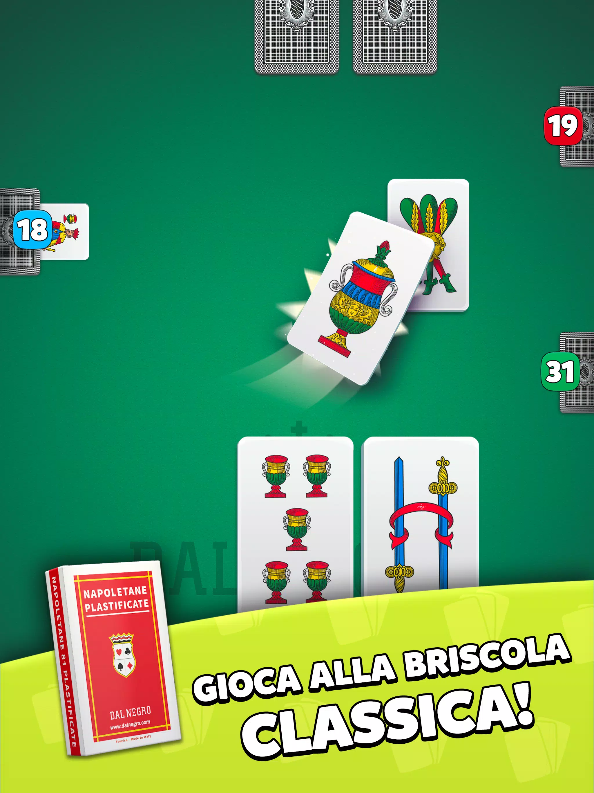 布里斯科拉是所有意大利纸牌游戏中最受欢迎的一款。唯一一款免费正宗的Dal Negro Briscola游戏,谨防假冒!