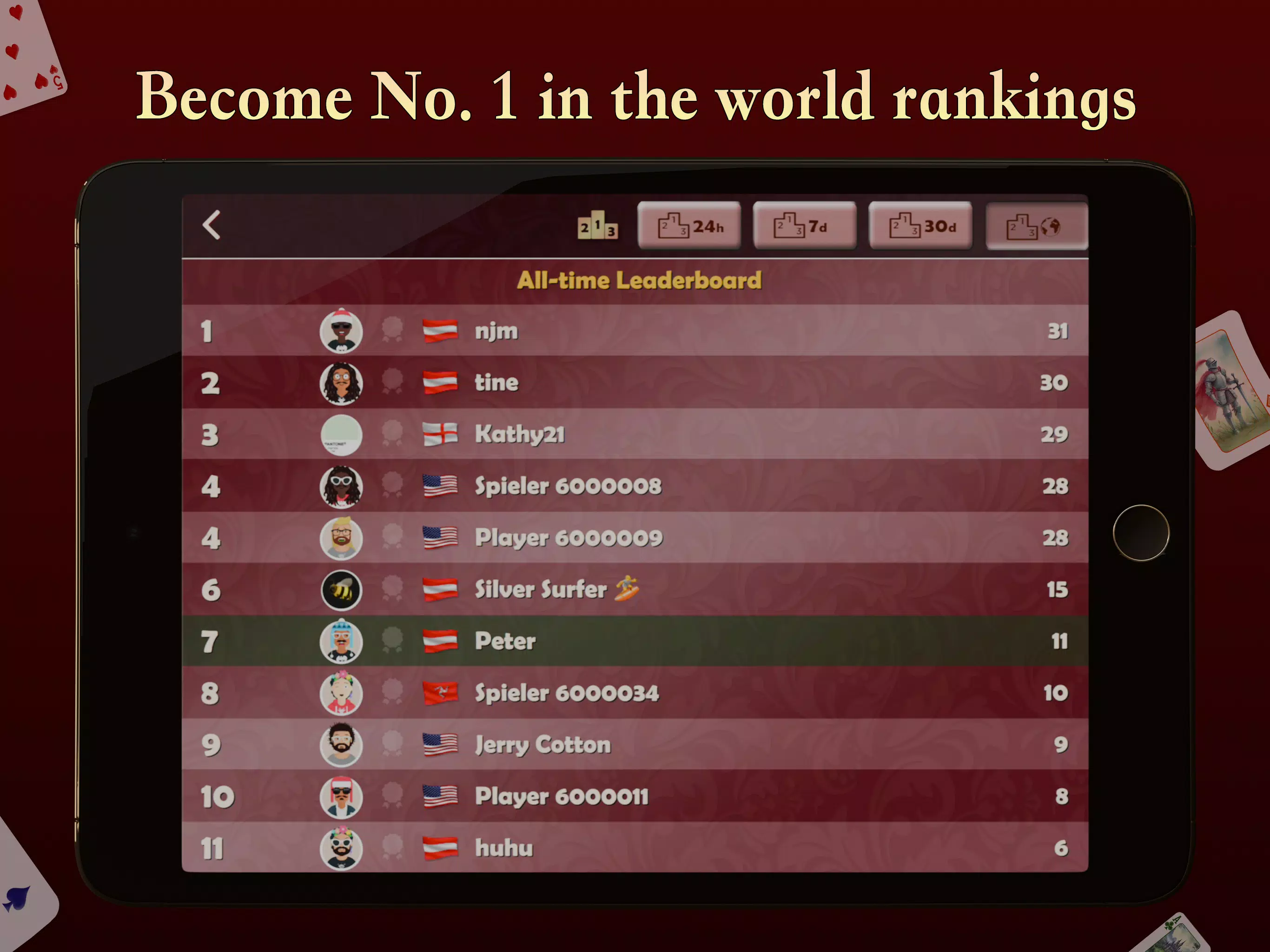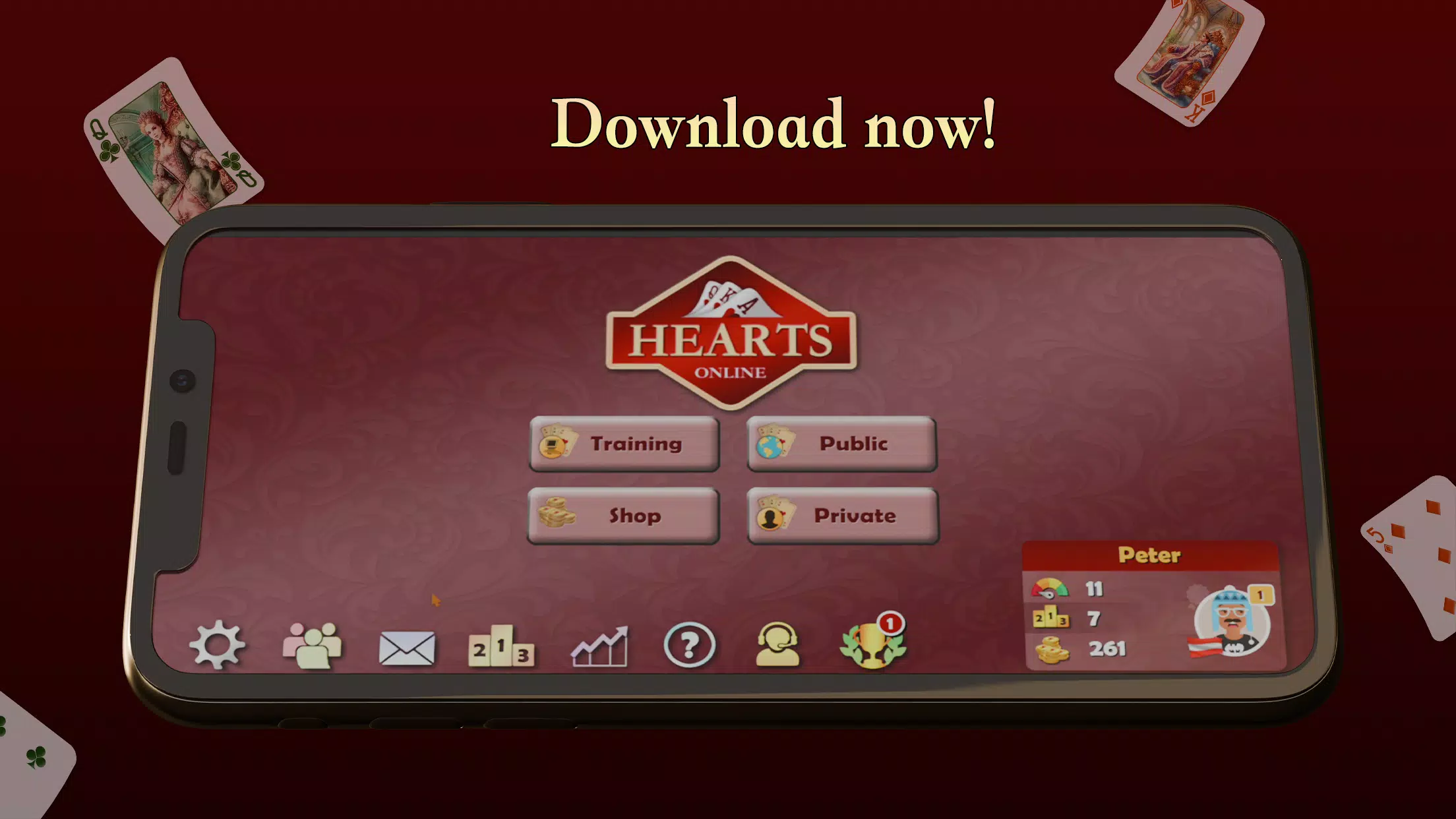 📥 立即下载《红心大战》——立即开始免费畅玩!无论您是新手还是红心大战高手,都能参加锦标赛,赢得成就,跻身顶尖行列。磨练您的策略,在牌桌上占据一席之地!