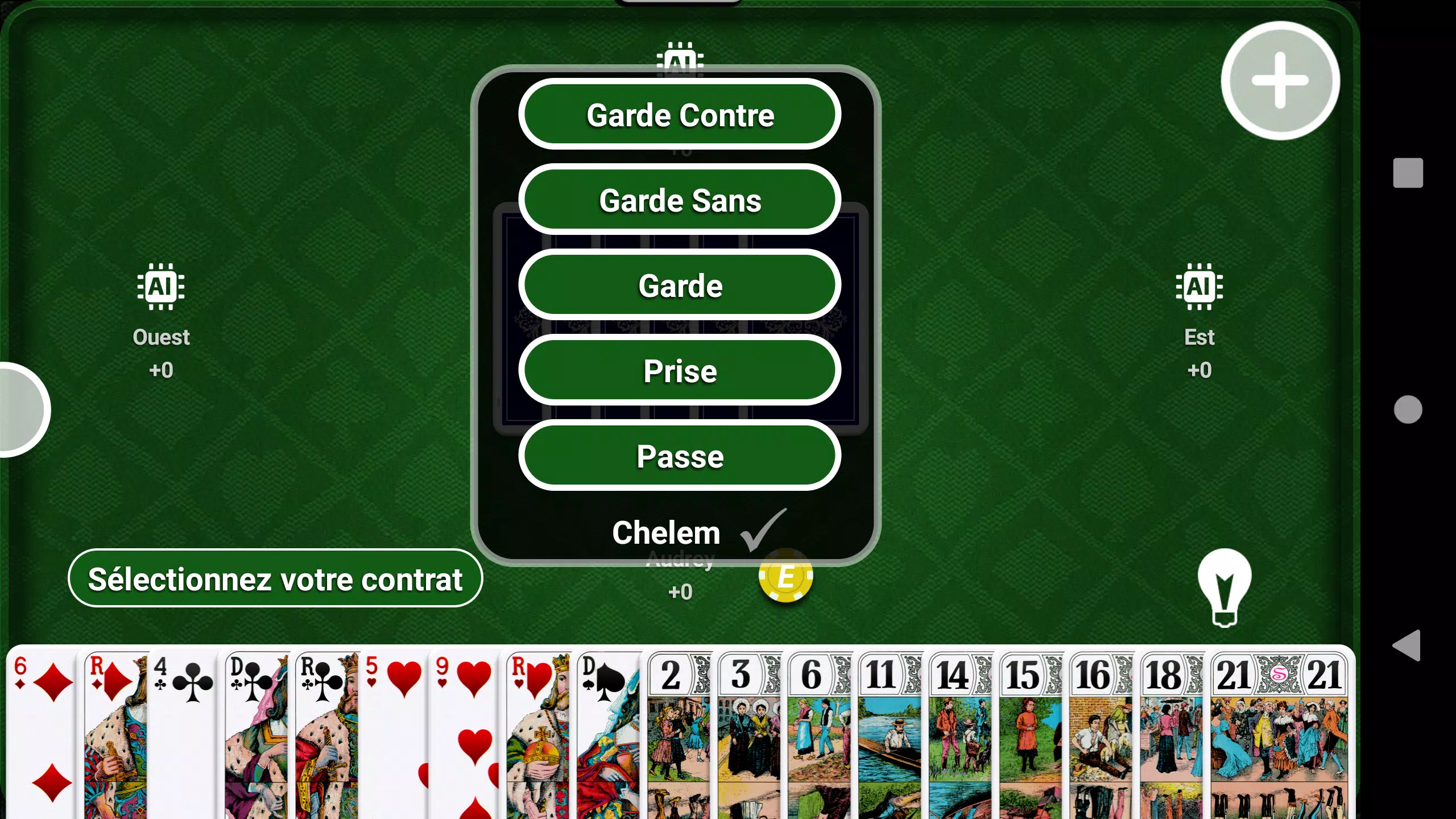 在Android智能手机或平板电脑上的塔罗牌游戏中,与3、4或5个玩家一起免费玩塔罗牌。与由高级人工智能(AI)控制的对手或本地网络和Internet上的其他玩家单独对战。