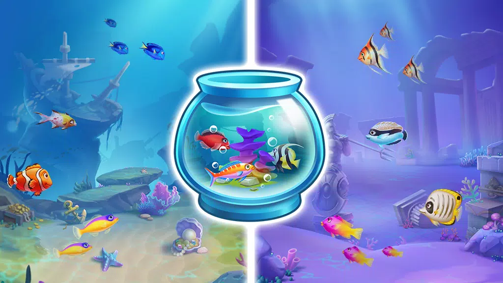 – 玩纸牌游戏,装饰水族馆 – 收集鱼类,装饰不同的水族馆,例如“蓝色深海”、“翡翠礁”、“亚特兰蒂斯”、“海底”和“农场”。