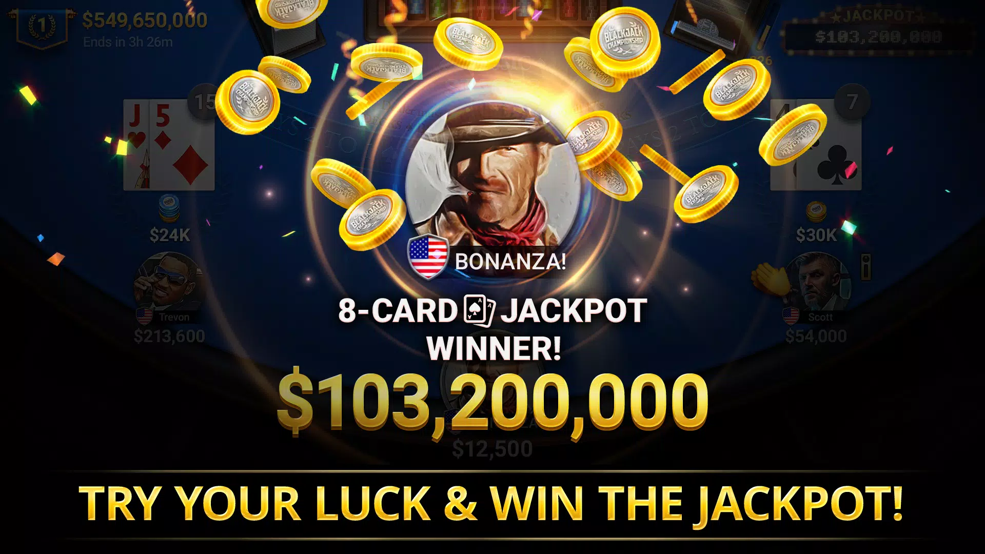 与世界各地的玩家一起畅玩最正宗的二十一点游戏!
