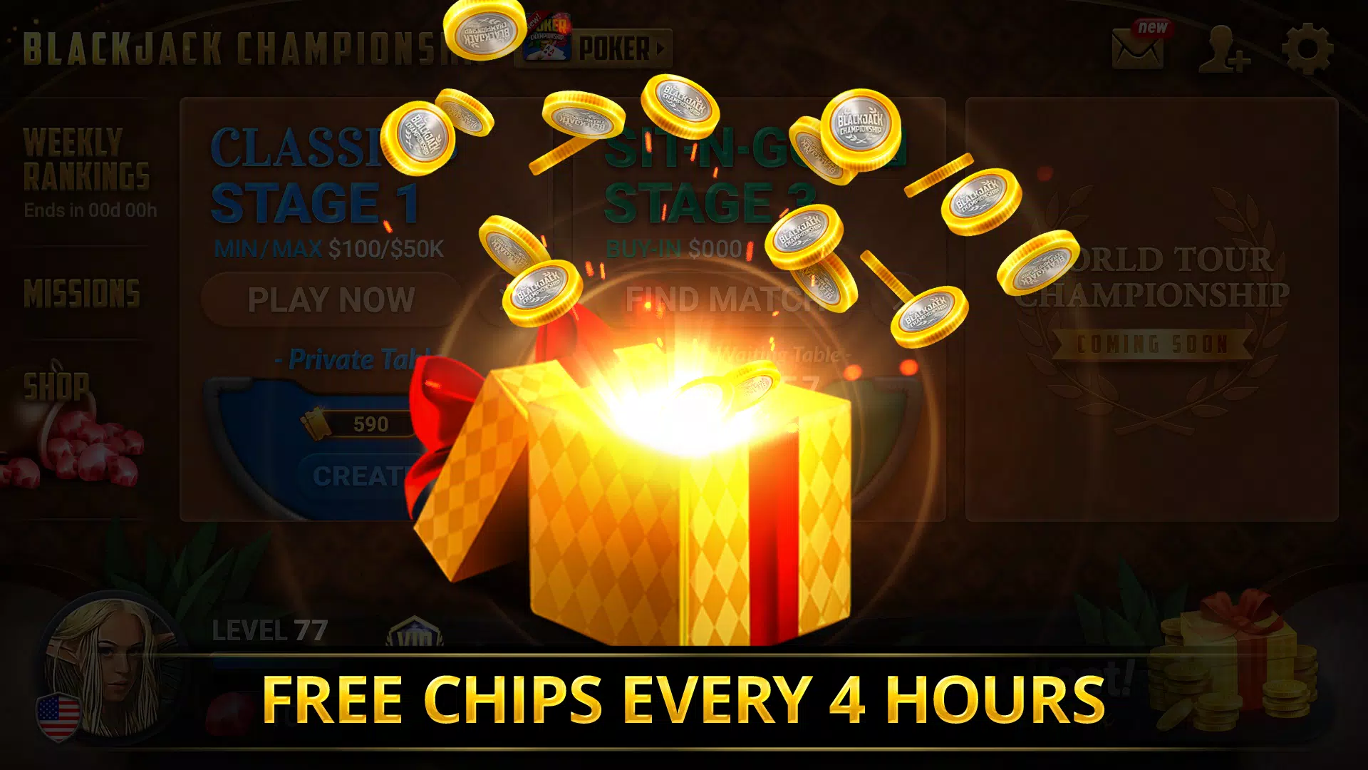 • 每4小时免费筹码:只需每天回来即可获得免费筹码。