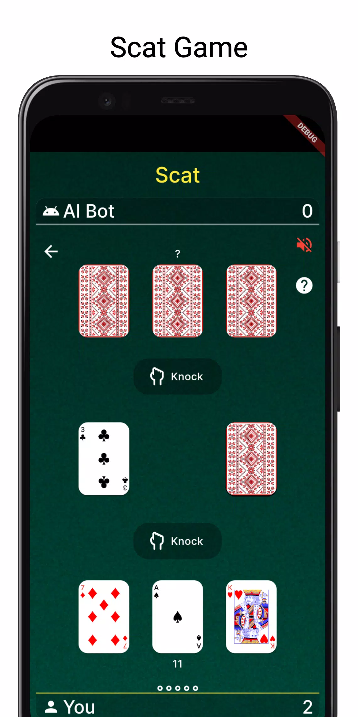 在您的安卓设备上畅玩 Scat (31) 纸牌游戏。在这款节奏明快、刺激有趣的经典纸牌游戏中,挑战智能 AI 对手或与在线玩家一较高下。游戏目标很简单:收集相同花色的牌,并在对手之前达到 31 分!