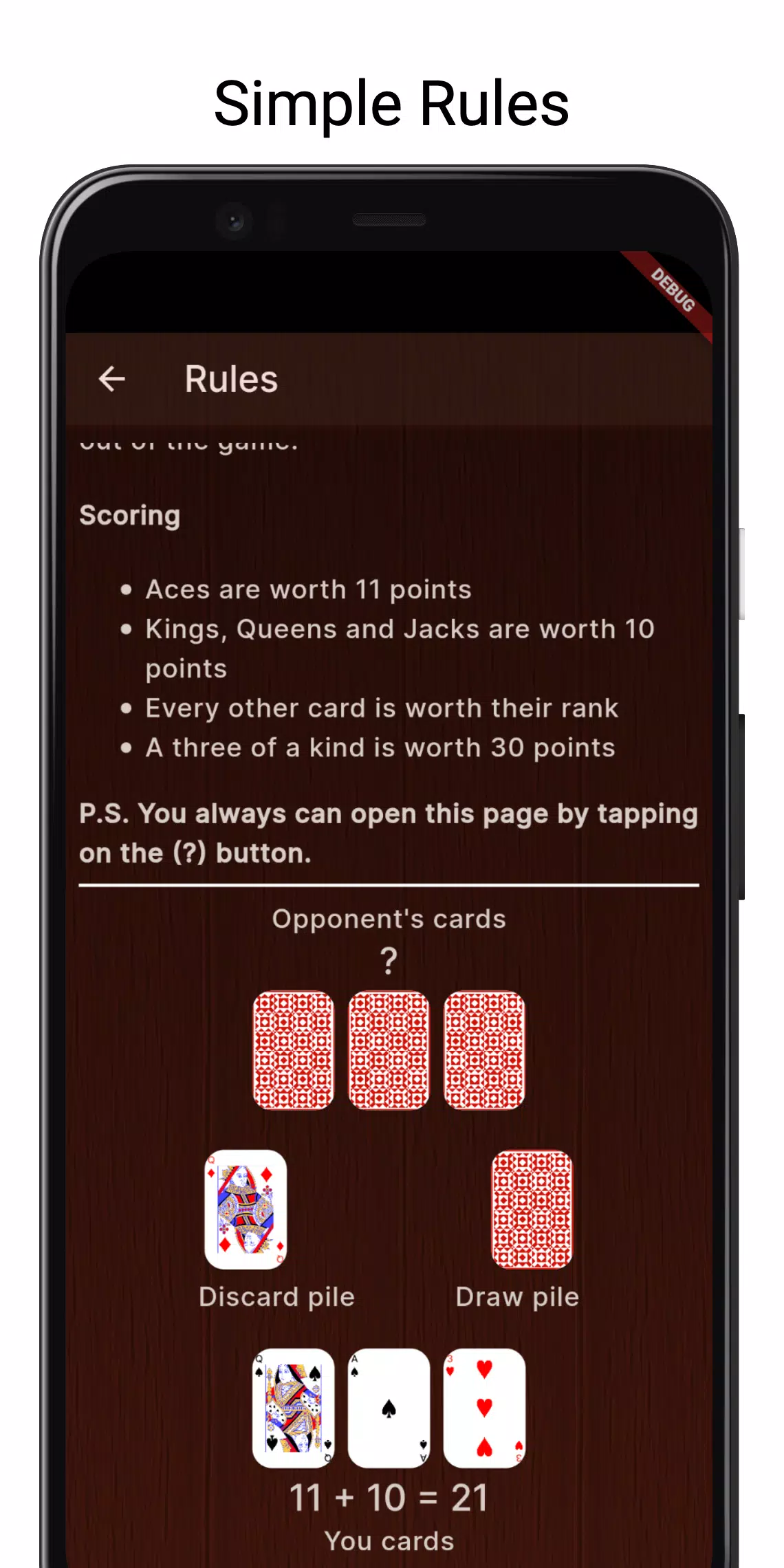 这款三十一点纸牌游戏设计简单、快速、有趣。只要有几分钟空闲时间,你就可以随时畅玩。