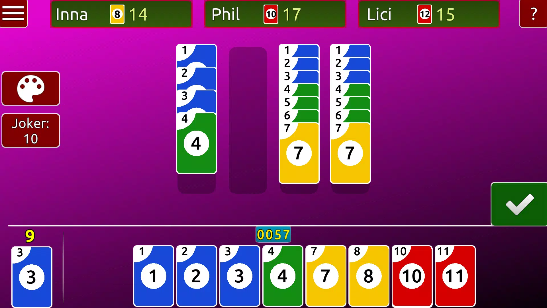 比对手更快地将所有卡牌按升序排列到建筑牌堆上。听起来很简单,但要小心,聪明的电脑对手可不会轻易放过你。
