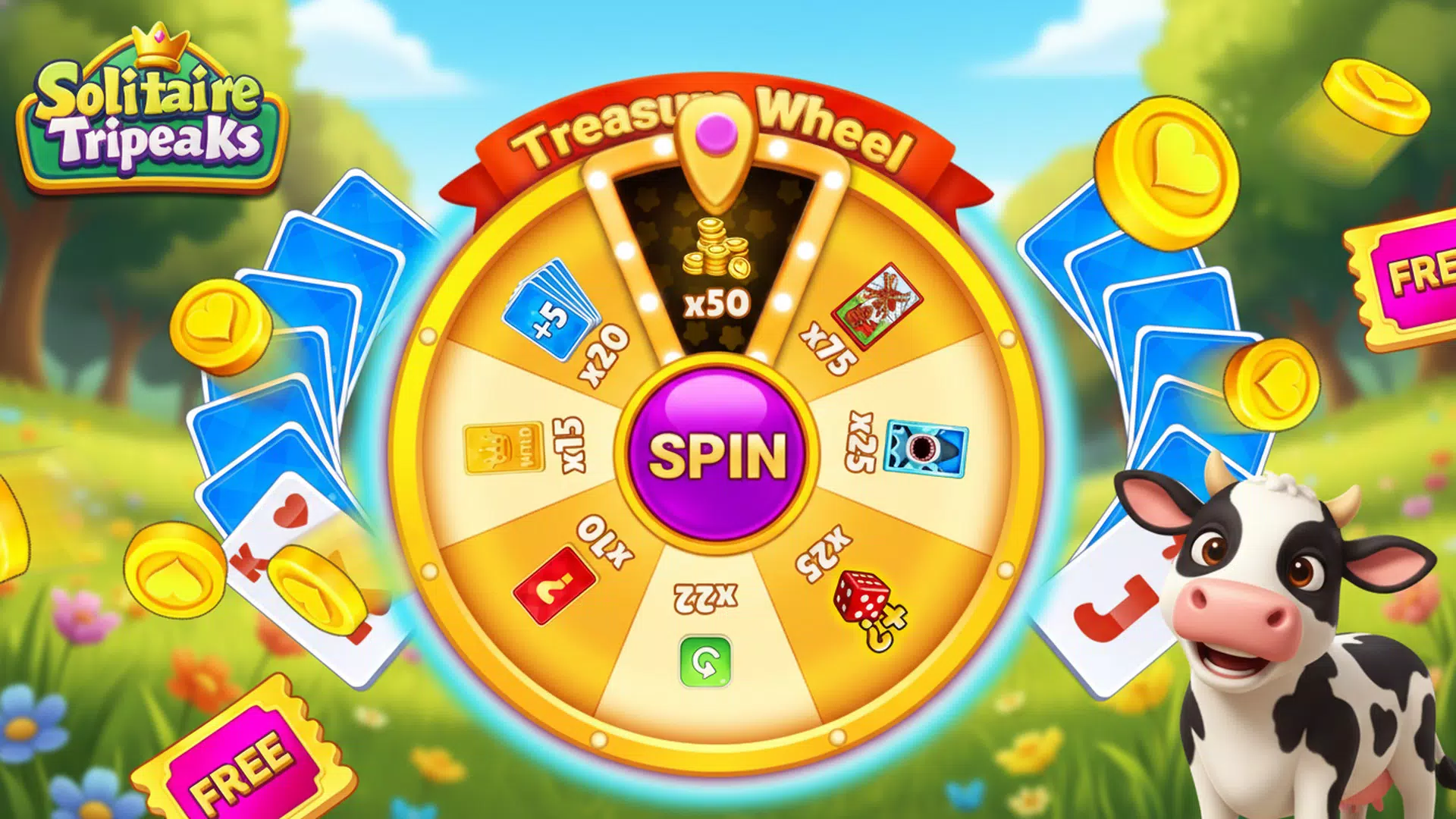 * 经典玩法:熟悉的 TriPeaks 规则与激动人心的道具完美融合。