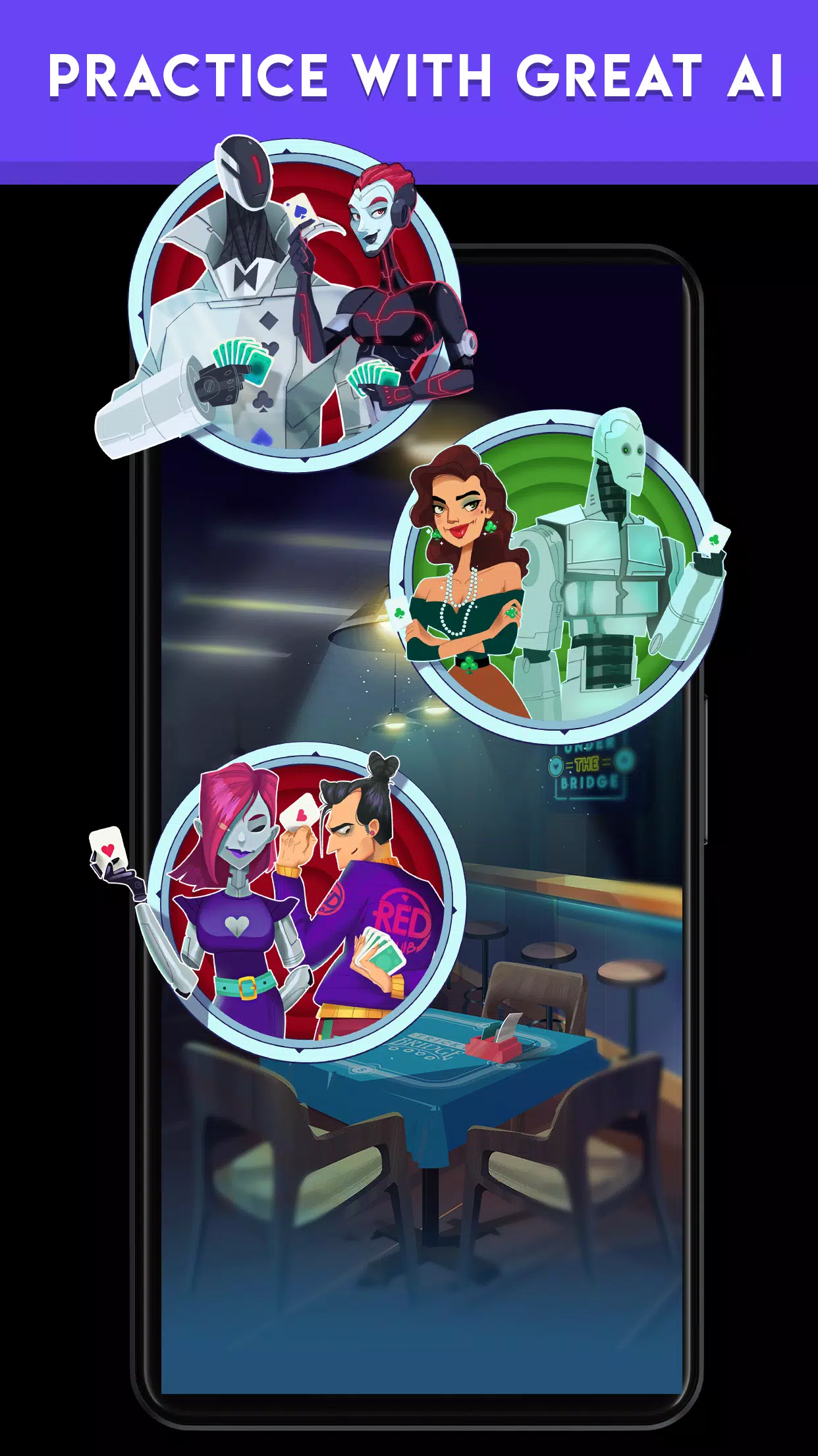 学习桥牌,单人练习,随时畅玩!这是一款经典的纸牌游戏,也是一项终极智力运动。您可以提升技能,也可以直接体验,并在这款专为各类玩家打造的应用中,参加符合您水平的锦标赛!