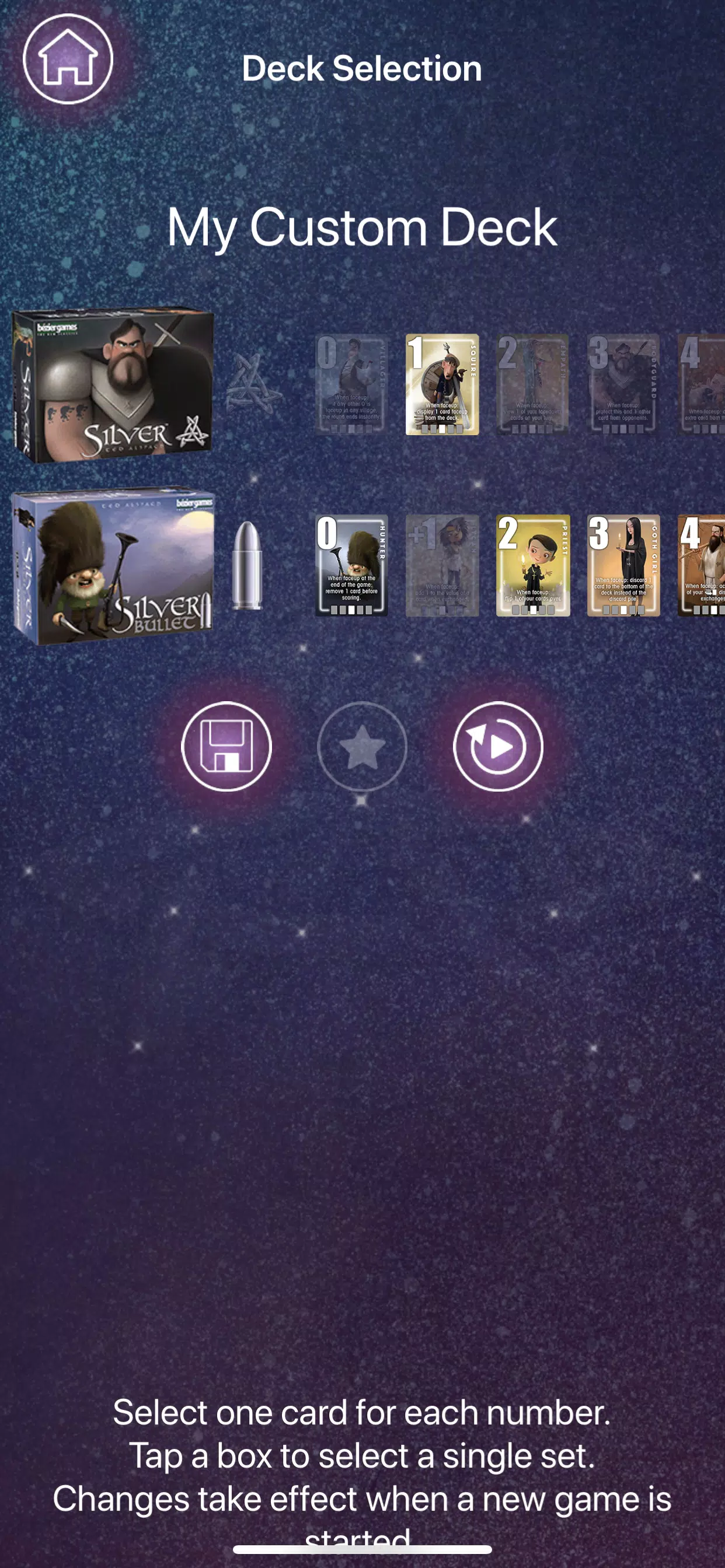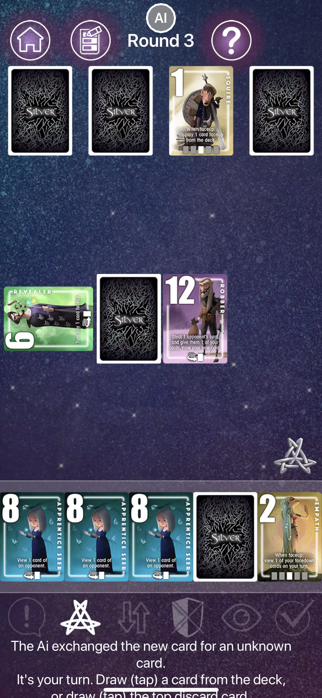 Silver 应用程序可让您与计算机 AI 玩 2 人游戏 Silver 和 Silver Bullet(来自 Bezier Games, Inc. 的纸牌游戏)。了解游戏的来龙去脉,并在与朋友较量之前进行练习!