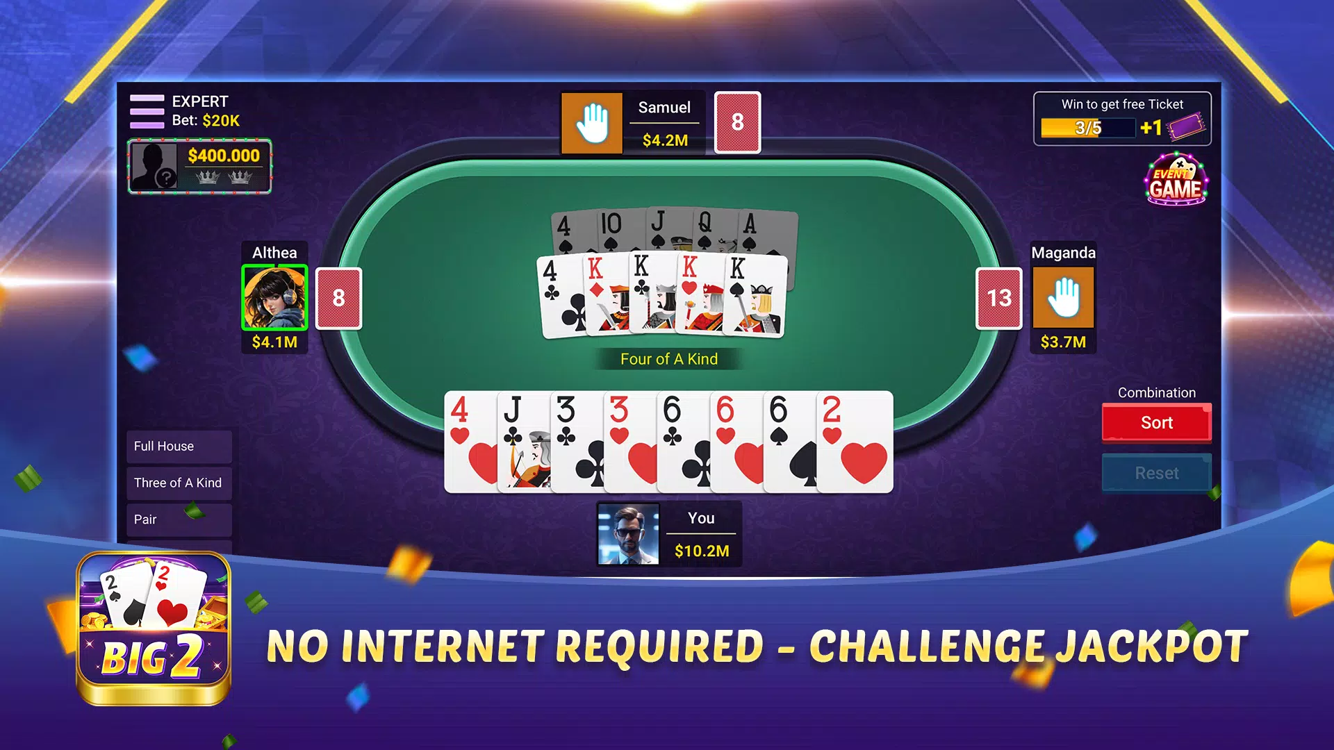 Big 2 离线版让您可以随时随地畅享完整的游戏体验。