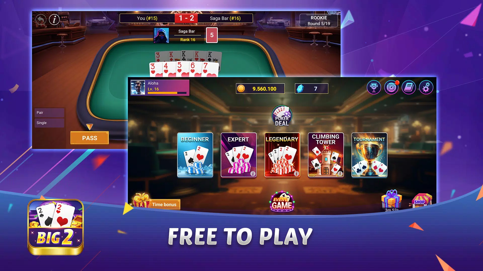 ⭐ BIG 2 离线版 – 随时随地畅玩
