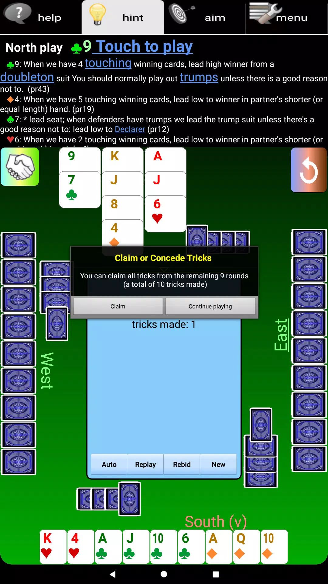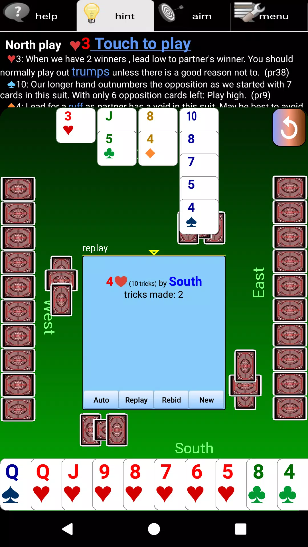 BriJ 就是您的理想之选。它提供多种级别,适合初学者和桥牌老手。每个阶段都提供丰富的帮助,指导您为什么叫牌或玩什么,以及如何叫牌或玩什么。