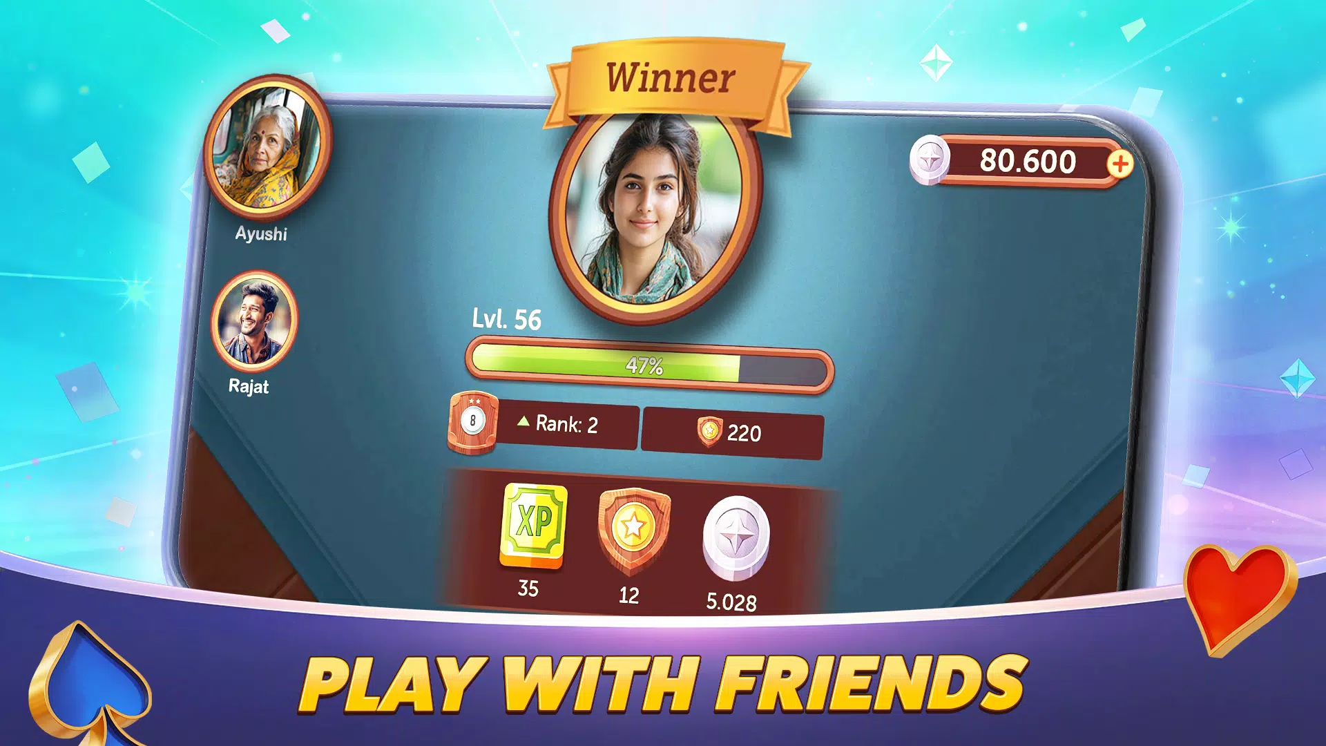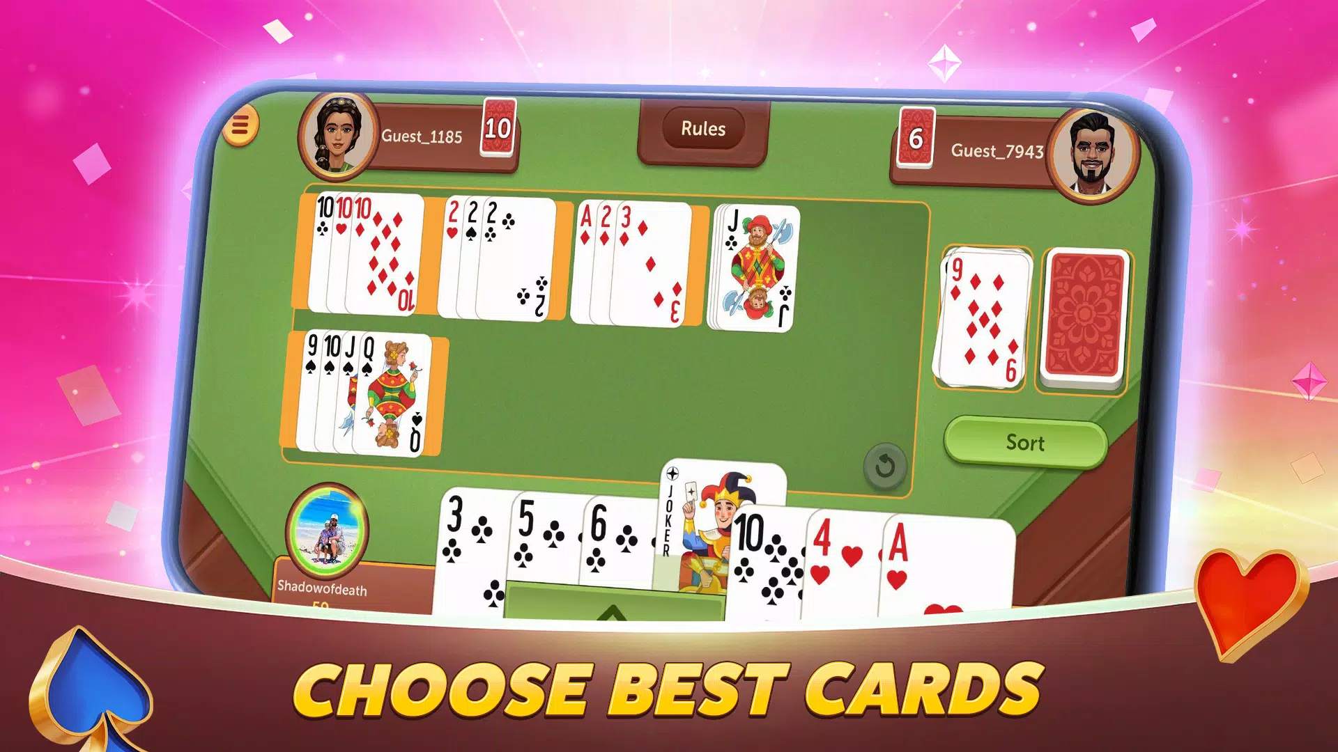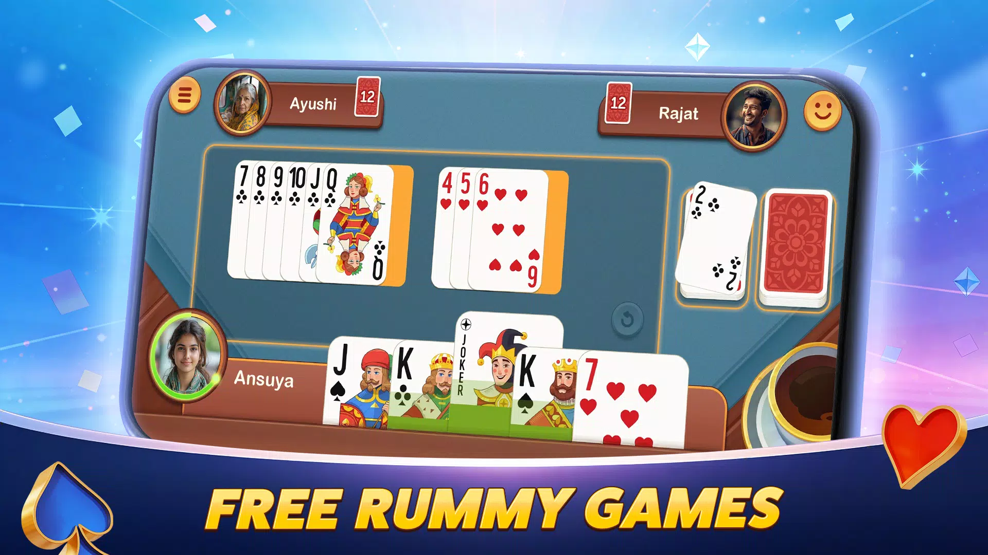 经典印度拉米牌规则与创新玩法(13 张牌拉米牌):遵循您喜爱的传统拉米牌规则——创建顺子、构建牌组并宣布您的牌型,赢取丰厚奖励!