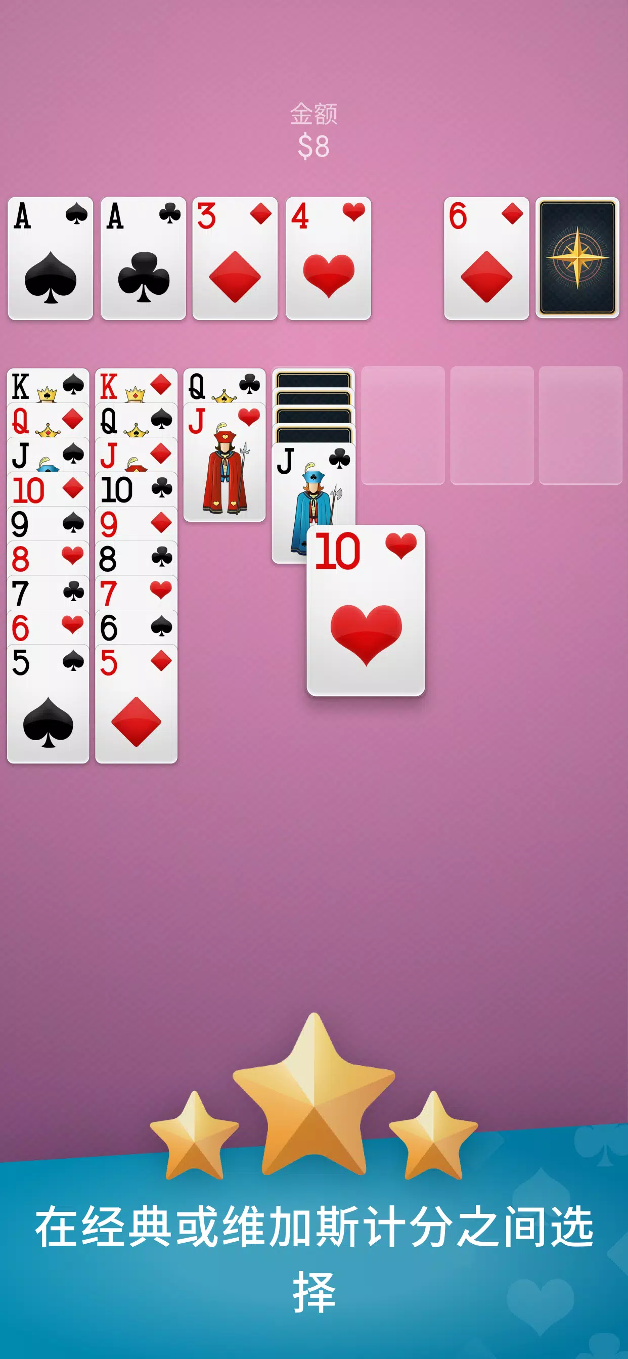畅玩全球最受欢迎的纸牌游戏——经典纸牌(Klondike 或 Patience),在手机或平板上免费体验。