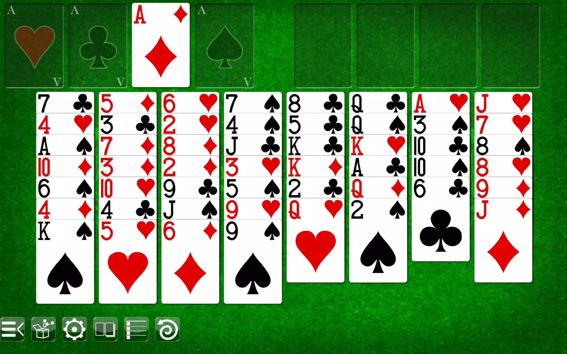 成功将所有牌移动到四个花色的牌堆(“格子”)中,按从低到高的顺序排列。这需要精湛的技巧和周密的计划。您能做到吗?