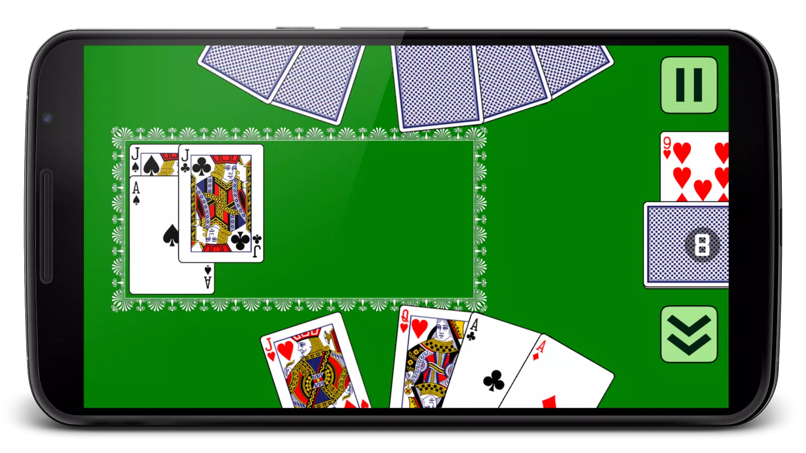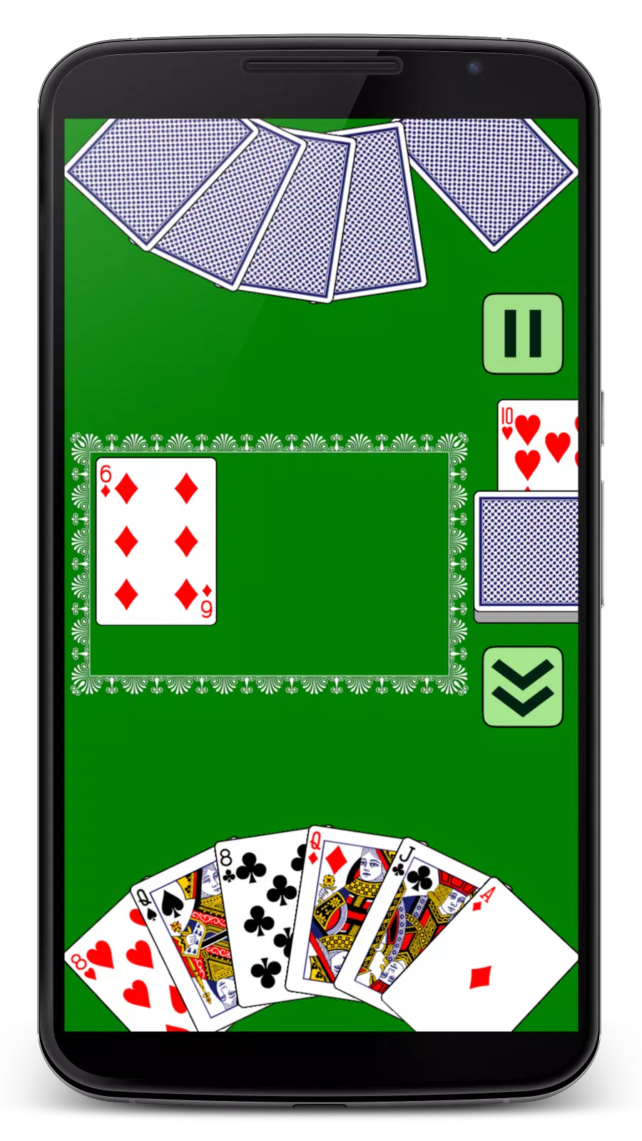 游戏的目标是出掉你手中的所有牌。游戏规则经典。4 种花色。其中一种花色是王牌。