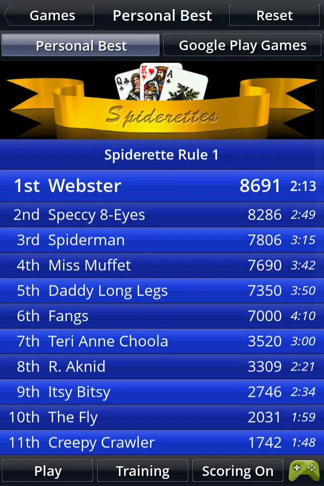 * 蜘蛛纸牌(一、二和四花色)