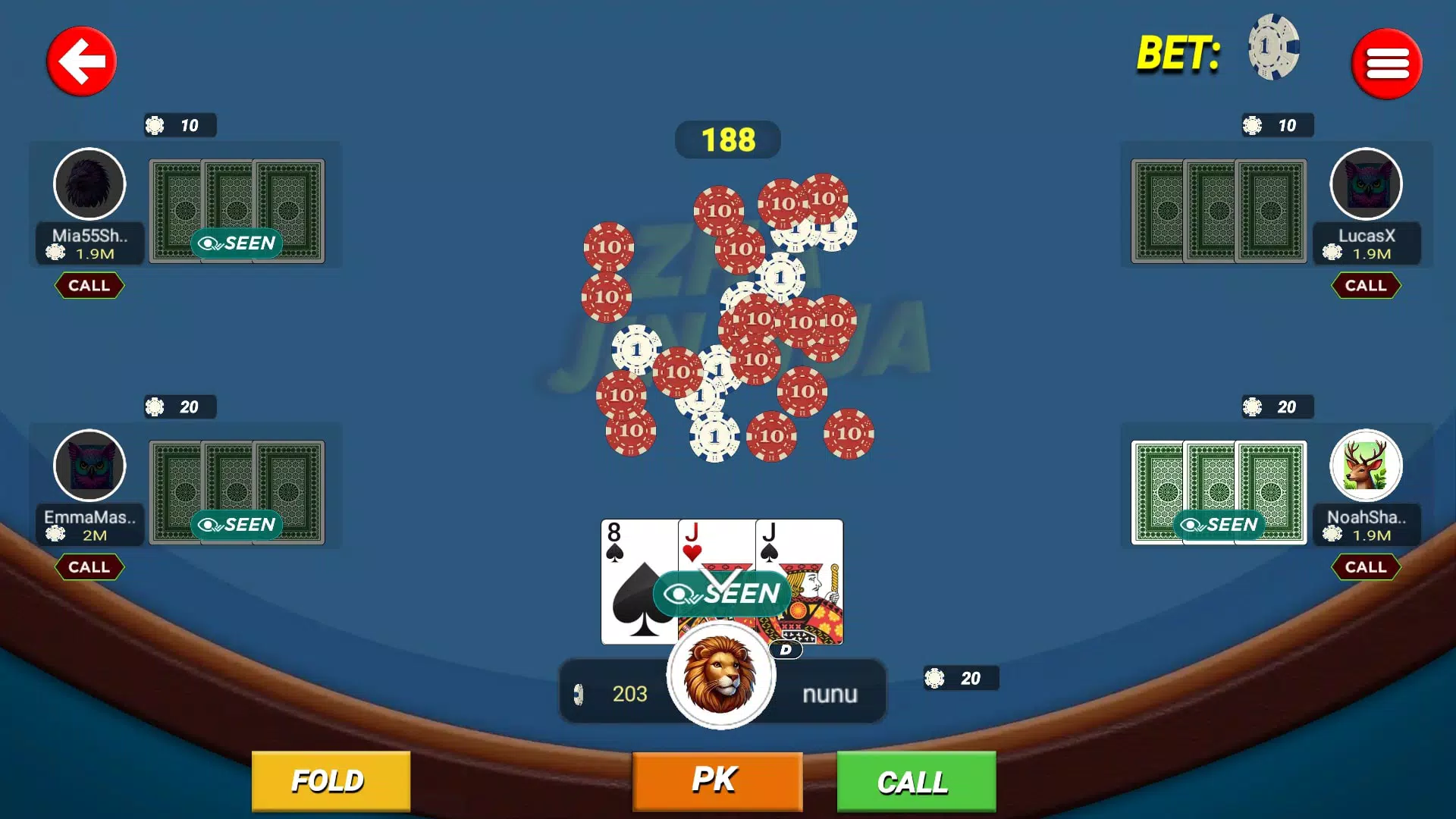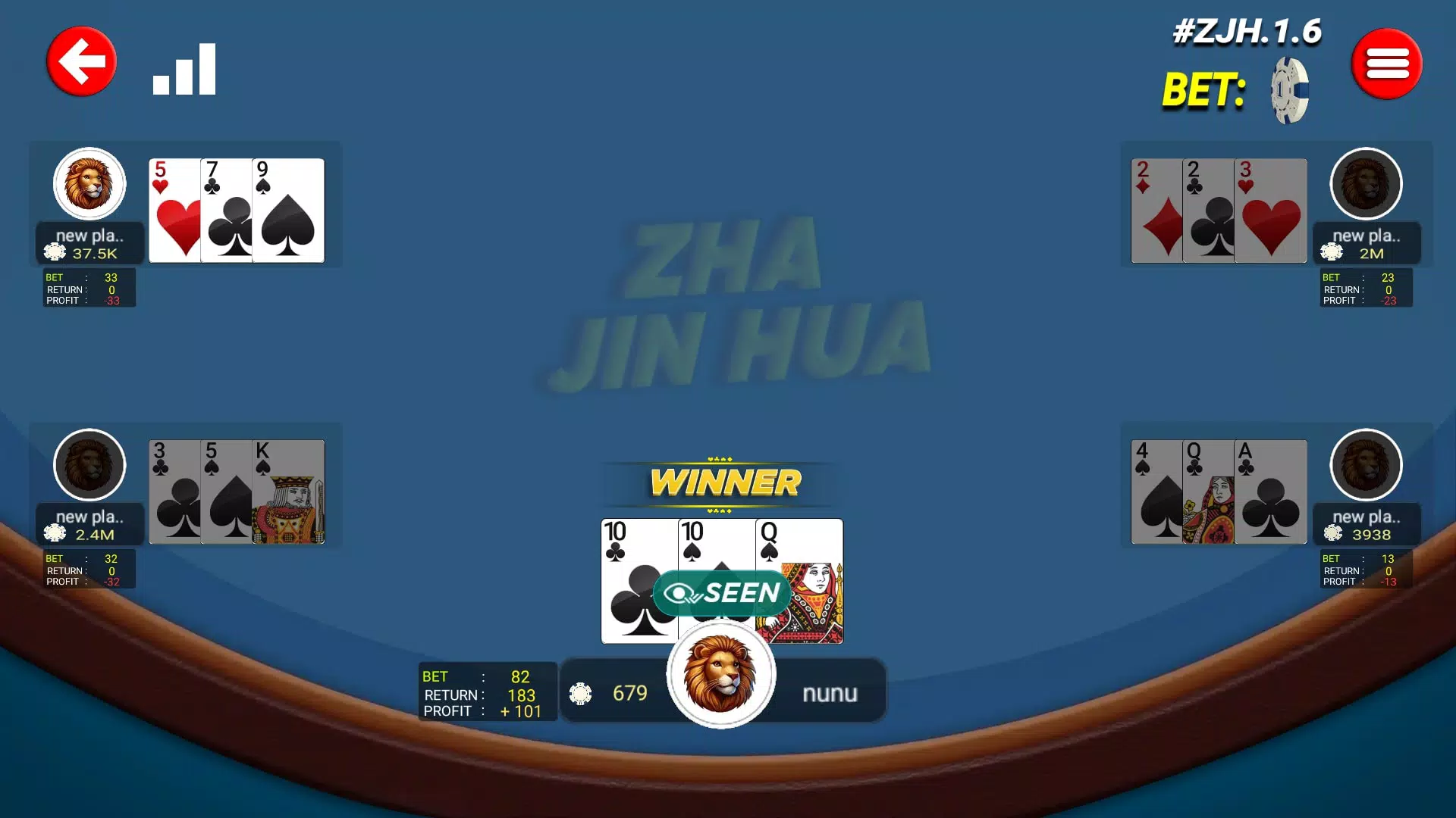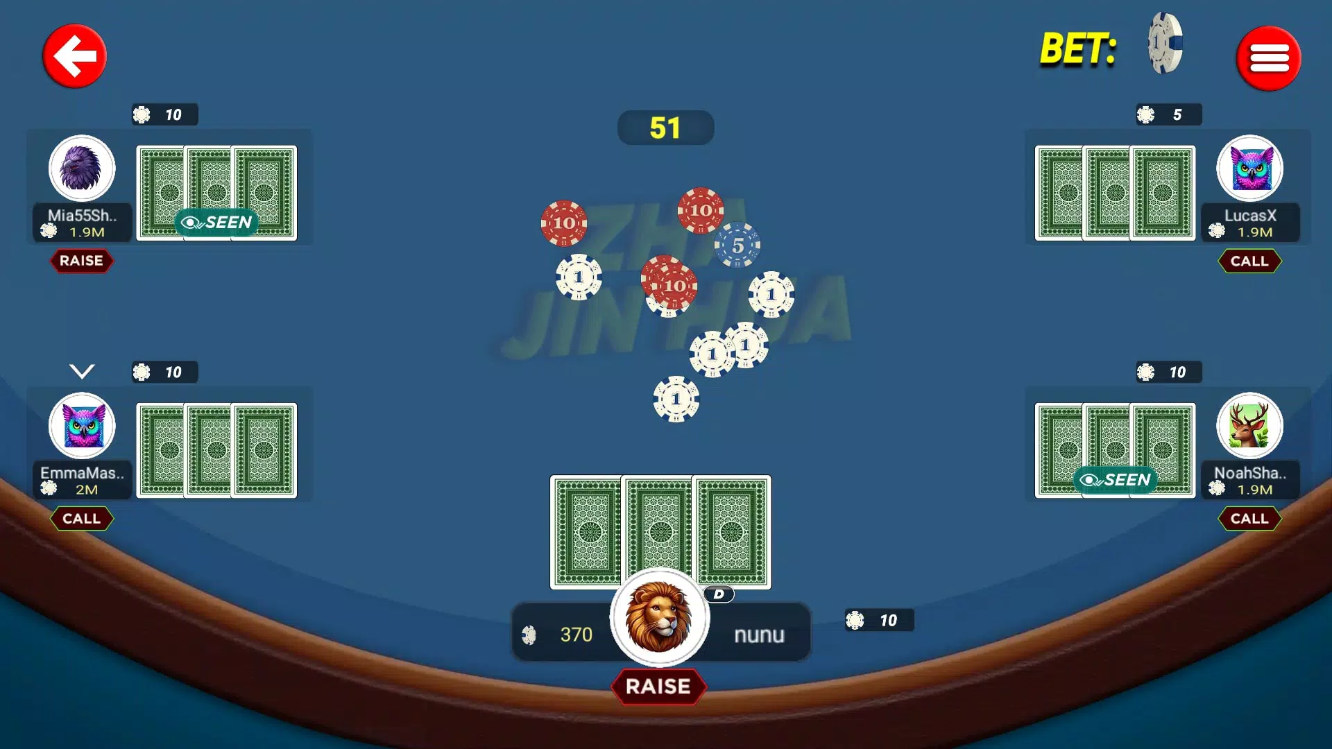 进入《扎金花 – Zhajinhua》的三张牌世界,体验盲注对赌的刺激、看牌策略的深度与PK比牌的紧张节奏。